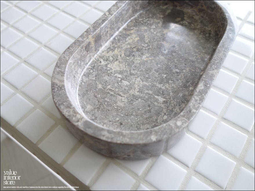 大理石トレイOV-GY アクセサリートレイ マーブルトレイ 小物入れ 天然大理石 洗面用品置き アクセサリートレイ 本大理石 W20 x D12cm