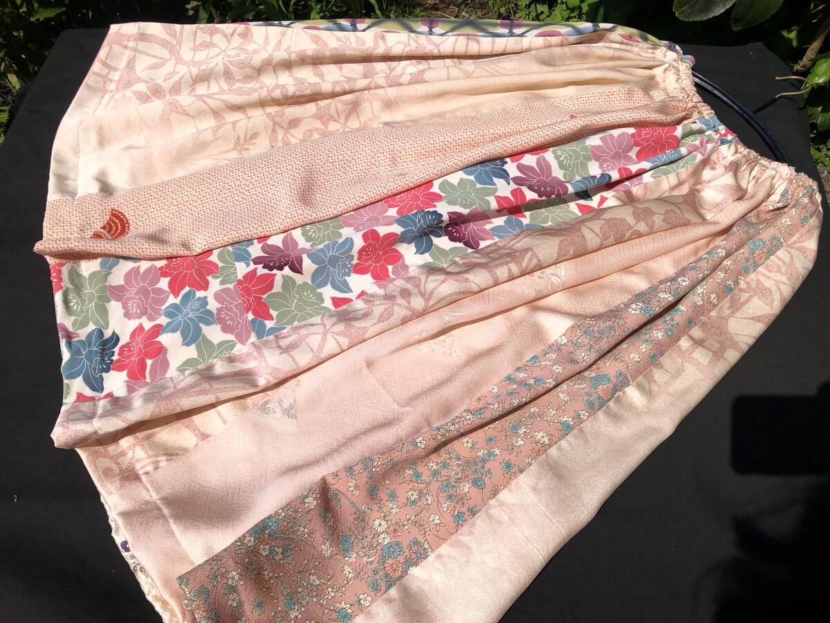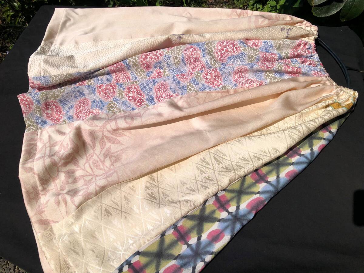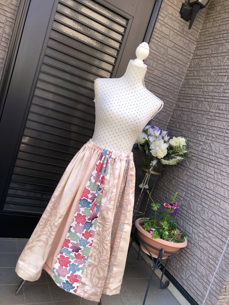ハンドメイド 着物リメイク・和服リメイク パッチワーク 小紋 フレアスカート・ロングスカート 正絹 送料230円 上品