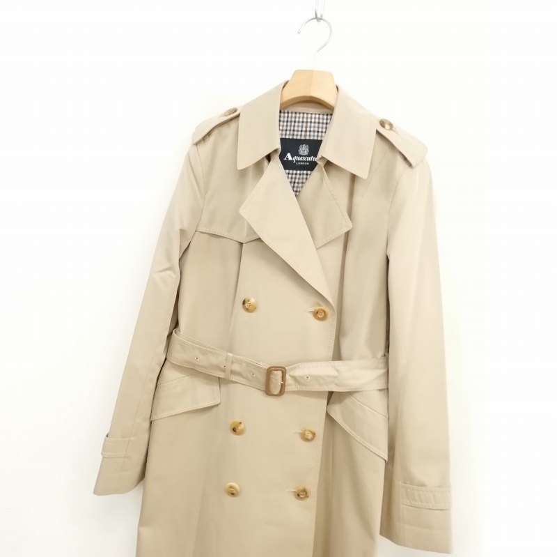 アクアスキュータム AQUASCUTUM 美品 トレンチコート スプリングコート ベルト付 チェック裏地 11 ベージュ レディース