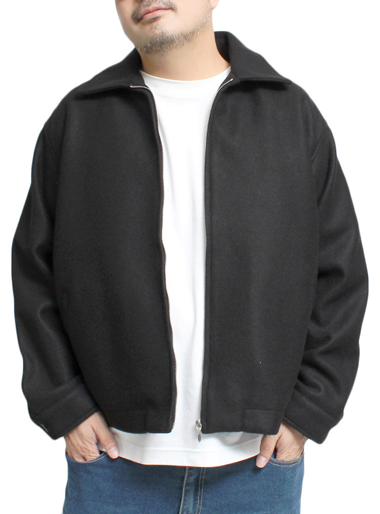 商品名 | 【新品】 4L ブラック フェイクメルトン ジャケット メンズ 大きいサイズ 無地 襟付き ジップアップ スイングトップ |