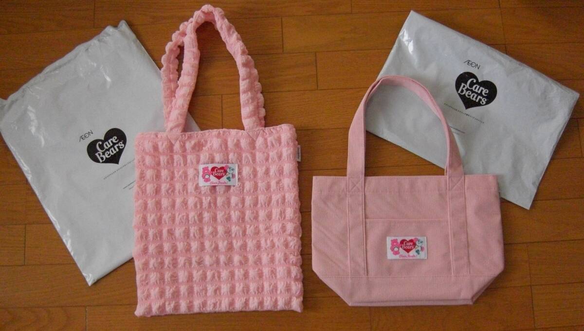 イオン 春トクまつりでいただいた、ケアベアコラボ チアパンダ春色コーデュロイバッグと、ケアベアコラボ チアパンダポップコーンバッグ、2点セット、どちらも新品です。色はピンクです。