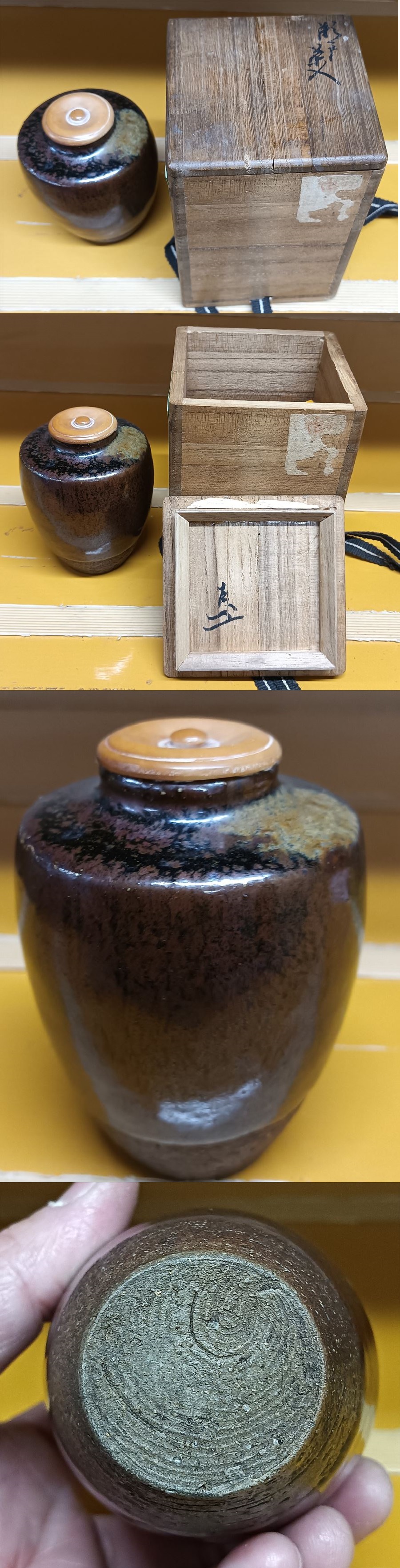 桃山時代 江戸時代 古瀬戸茶入 表千家 九代 了々斎 在判・書付入 花押 共箱