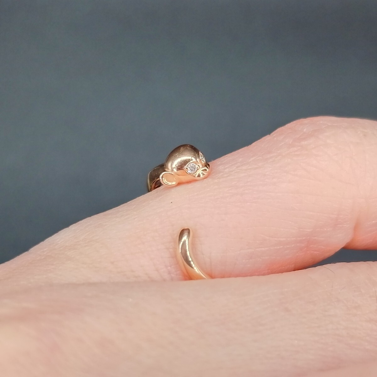 細身の螺旋デザインに縁起のいいおサルがついた、デザイン性のあるリングです。