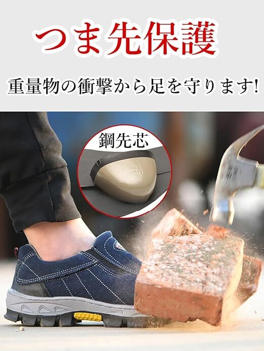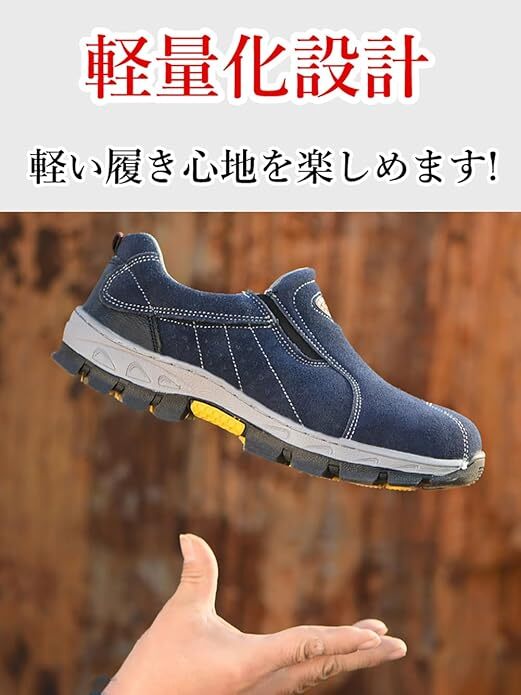 安全靴 先芯入り 作業靴 紐なし 通気性 軽量 防水 防災靴 鉄芯 先芯入り 踏み抜き防止 厚底 ブルー サイズ:27cm