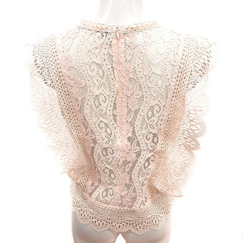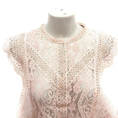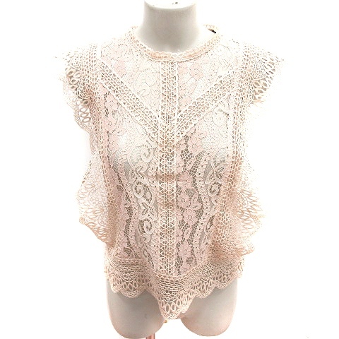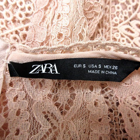 ザラ ZARA シャツ ブラウス ノースリーブ 総柄 S ピンクベージュ /RT レディース