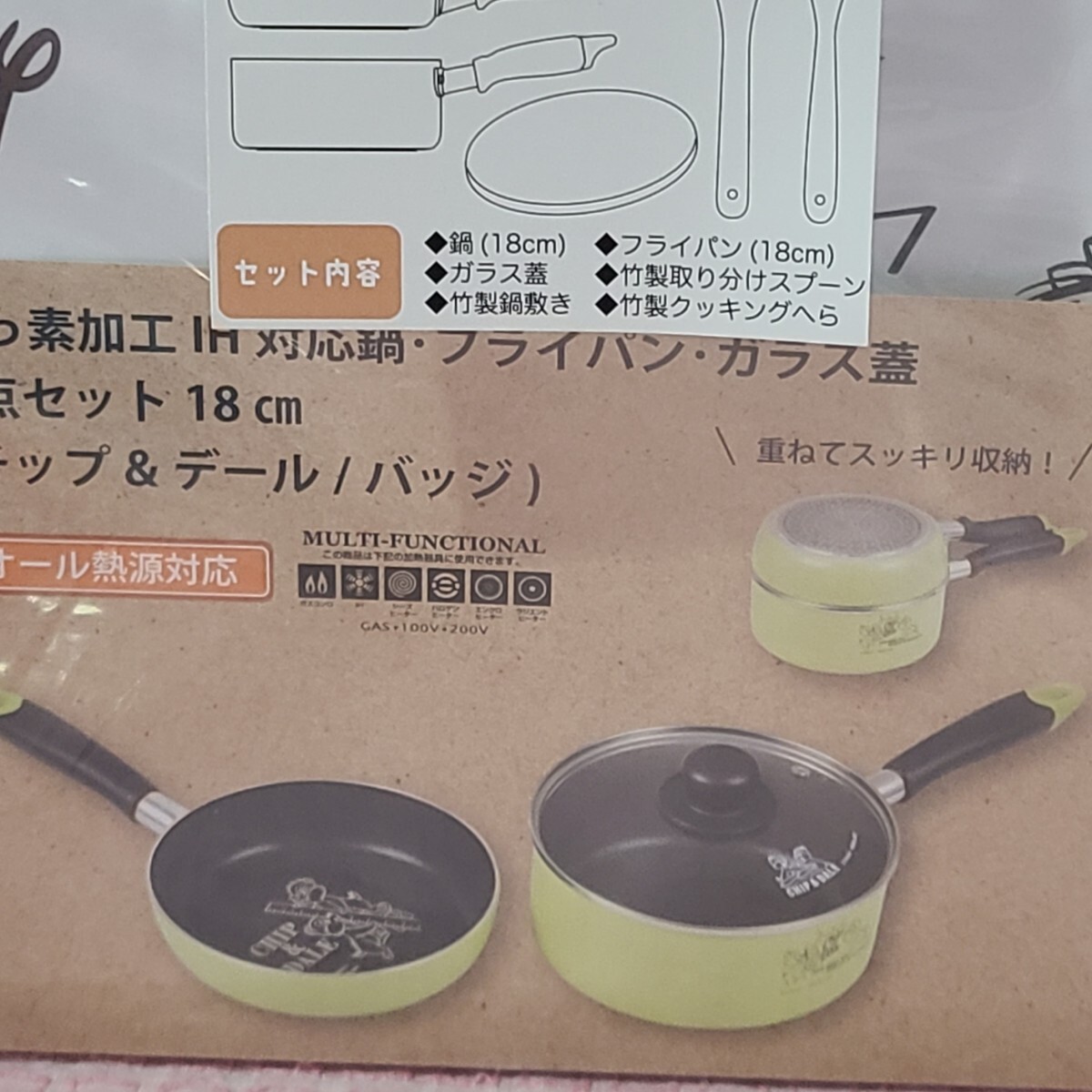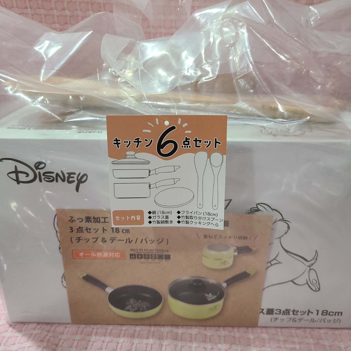ディズニー チップとデール キッチン ハッピーバッグ 鍋 フライパン IH対応 ガラス蓋 竹製鍋敷き 取り分け スプーン ヘラ ミッキー