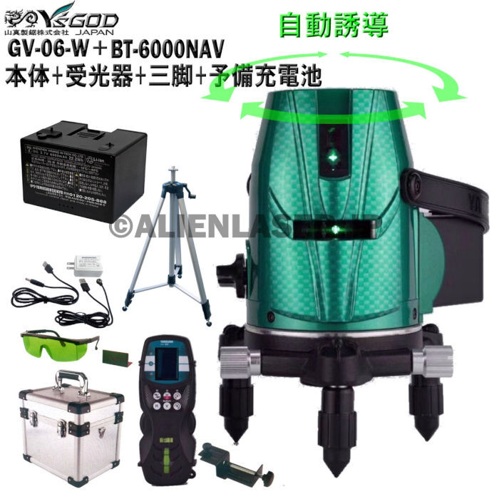 ■送料無料 1年保証 YSGOD ヤマシン 5ライン 自動誘導 グリーン スーパーシューティング 墨出し器 GV-06-W 本体+受光器+三脚たち線・水平ライン・大矩ライン(緑色レーザー)地墨ポイント(赤色レーザー)2電源方式充電&ACアダプタ標準付属品:専用ケース、レザーゴーグル、専用受光器、専用ACアダプター、リチウムイオン電池、リチウムイオン電池充電アダプター、取扱説明書、保証書、お客様登録用紙。■光源/可視光半導体レーザー2.5mW以下515nm(緑)地墨650nm(赤色レーザー)h■aレーザー安全基準/JISクラス1M■y本体寸法/本体W121×台座W116×H210mm■a使用時間/約3時間(全ライン照射)定格30分■h制動方式/磁気制動式(ジンバル式)■作業範囲/室内/約10m・屋外/約25m(受光器使用時)リモコン使用可能範囲は15m以内■水平・縦ライン精度10メートルで±1mm■直角精度90°±0.012°■自動補正範囲±3°■防塵・防滴設計IP54■受光器 BBR-GV■ホルダー付■三脚 T-GA■JAN 4534587 521277※モニターの発色具合により、実際のものと色が異なる場合がございます。