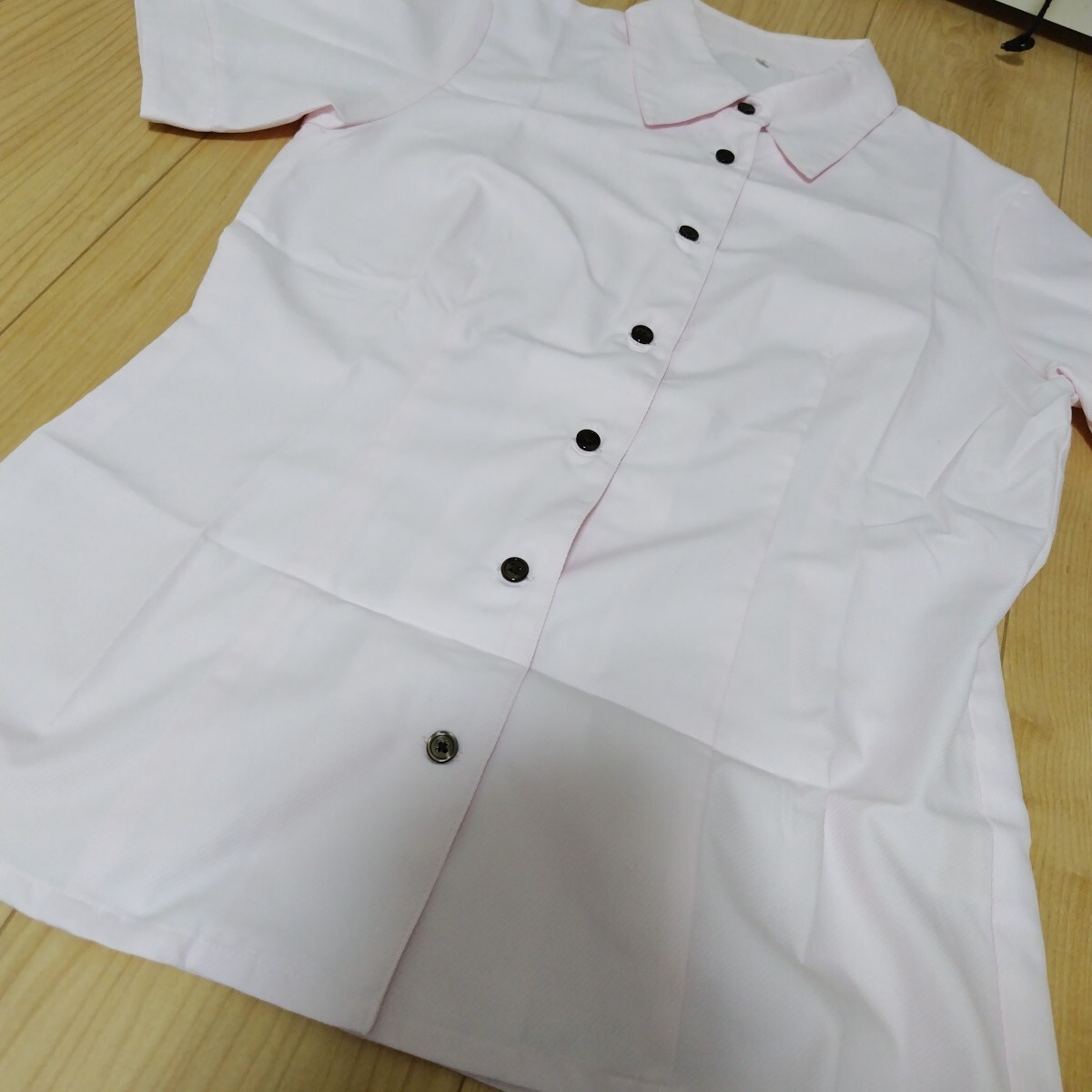 こちらは、9号サイズの半袖ピンクブラウス シャツです。購入したもののサイズ感が合わず試しに着たのみの美品ではありますが、自宅保管のため気になる方は入札をお控えください。
