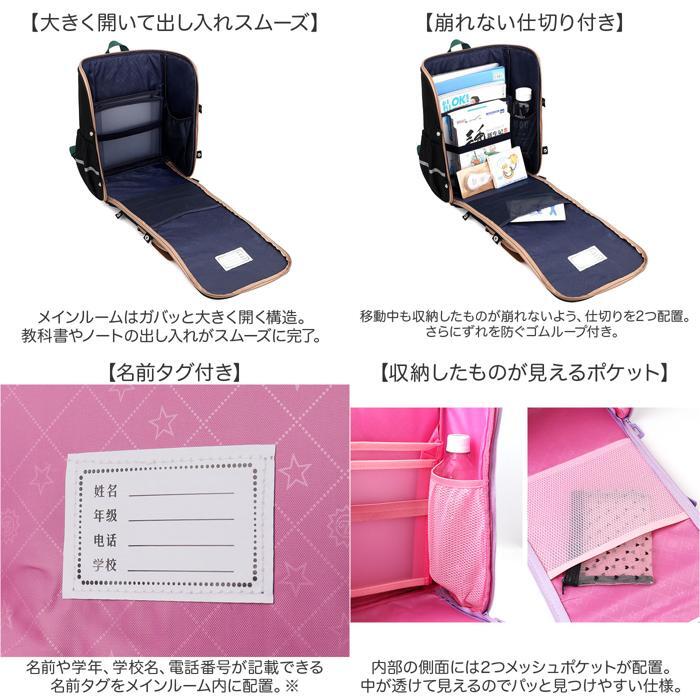 | 商品説明 | ・・【ランドセルデザインがGOOD】 ・ランドセルのような可愛いデザイン♪容量と機能性に優れたキッズリュック。 ・【機能性もデザイン性も◎】 ・ランドセルのような丸みがあるボックス型!可愛い見た目と収納力が嬉しいポイント。 ・【大きく開いて出し入れスムーズ】 ・メインルームはガバッと大きく開く構造。教科書やノートの出し入れがスムーズに完了。 ・【崩れない仕切り付き】 ・移動中も収納したものが崩れないよう、仕切りを2つ配置。さらにずれを防ぐゴムループ付き。 ・【名前タグ付き】 ・名前や学年、学校名、電話番号が記載できる名前タグをメインルーム内に配置。※ ・【収納したものが見えるポケット】 ・内部の側面には2つメッシュポケットが配置。中が透けて見えるのでパッと見つけやすい仕様。 ・【ロック付きフラップポケット】 ・フロントのポケットはファスナーを閉じ忘れても中身が飛び出さないロック機能付き。 ・【サッと取り出せるポケット】 ・ペットボトルや折りたたみ傘の収納に便利なサイドポケットを配置。 ・【蒸れにくく快適】 ・背面とショルダーベルトは程よいクッションいり。ムレにくいメッシュ素材なのもGOOD。 ・【楽な背負い心地に】 ・チェストベルトとショルダーベルトで体に沿う楽な背負い心地に。 ・【ピカッと光るリフレクター】 ・フロントのパッチとサイドのラインはリフレクター素材で、周りへの視認性をUP! ・【底鋲付きで汚れにくい】 ・底鋲を4つ配置し、地面や床に置いても汚れが付きにくい♪ ・【取り外し可能なポーチ】 ・ちょっとした小物を入れるのに便利なポーチ付属。ナスカンで取り外し可能。 ・【チャーム付き】 ・目印にもなる可愛い宇宙飛行士さんのチャーム付き☆こちらも取り外し可能。 ・【ポケット仕様】 ・メインルーム・・・仕切り×2、メッシュポケット×2 ・フロント・・・ファスナーポケット×1 ・両サイド・・・オープンポケット×1ずつ ・【付属品】 ・ポーチ×1、チャーム×1 |