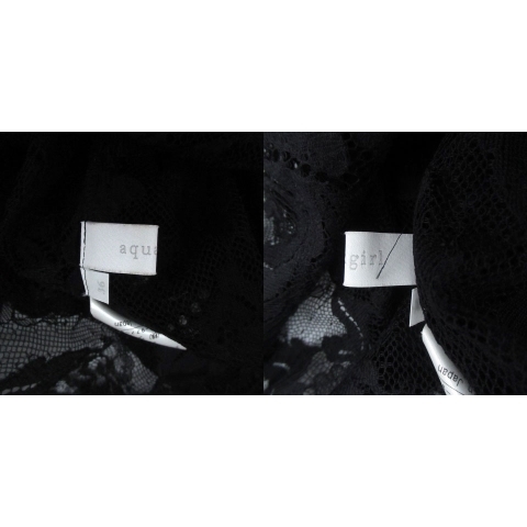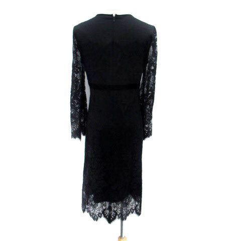 アクアガール aquagirl ワンピース ラウンドネック 長袖 ミモレ丈 総レース インナー付き 36 S 黒 ブラック /HO41 レディース