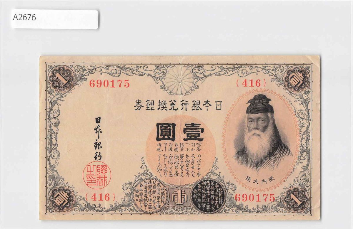 *[令]日本紙幣 1圓(1919)[A2676]7f9
