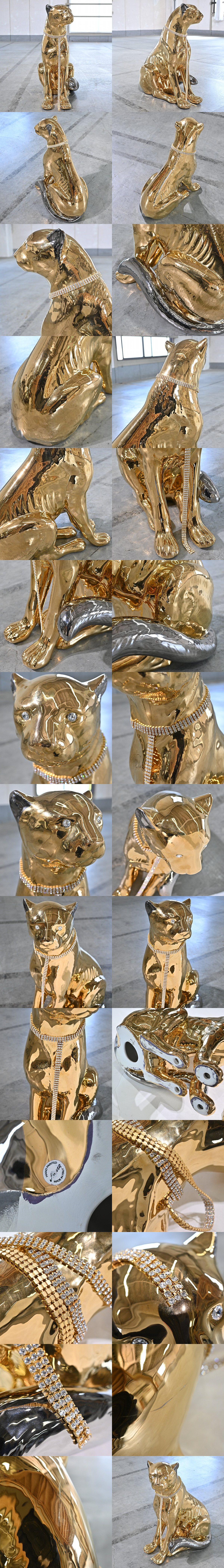 イタリア製 40万 AHURA社 置物 オブジェ チーター 店舗 玄関 ウェルカム スワロフスキー インテリア雑貨 ゴールド アニマル 動物 陶器