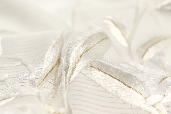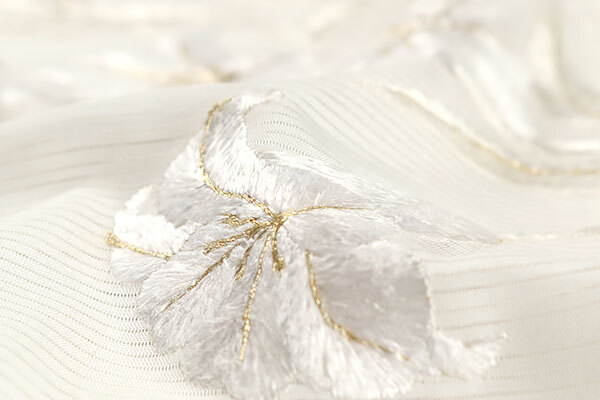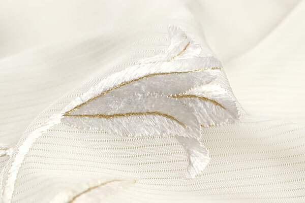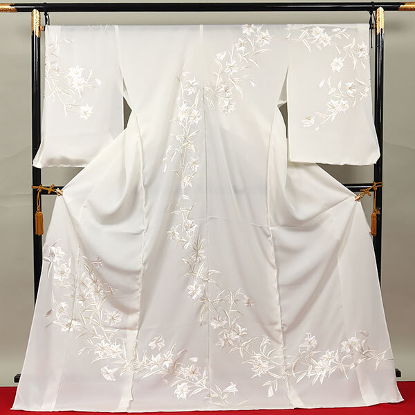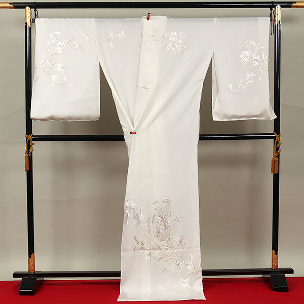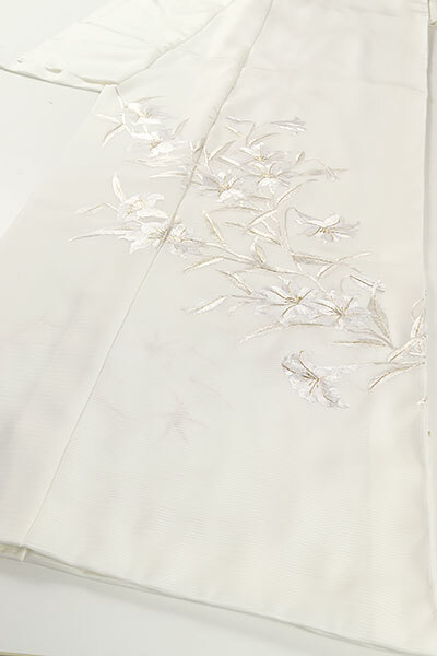 白色のお色目の糸で、百合が精緻な手刺繍で施されております。
