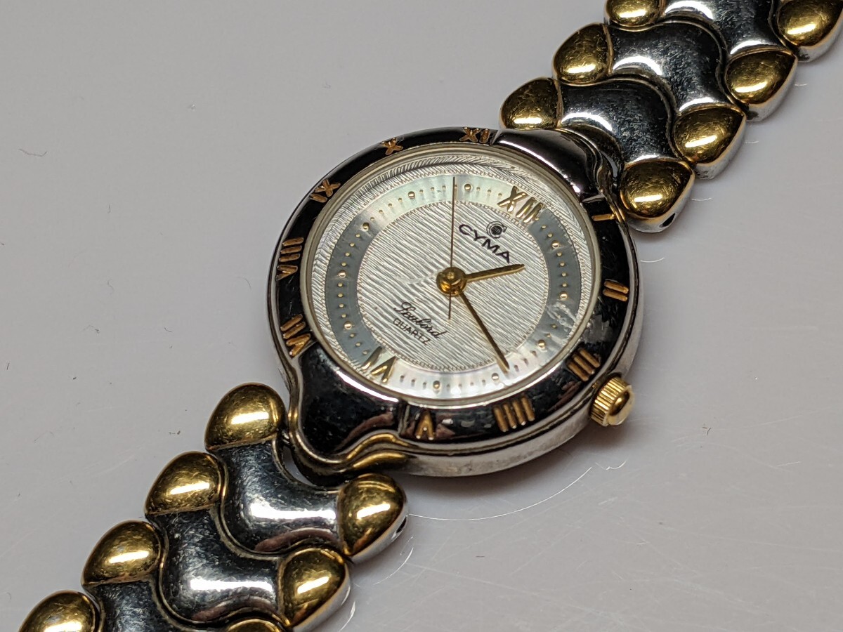 稼動品 シーマ CYMA 434 Sealord シーロード 腕時計 電池交換済み ウォッチ クォーツ ラウンド ローマン コンビカラー レディース