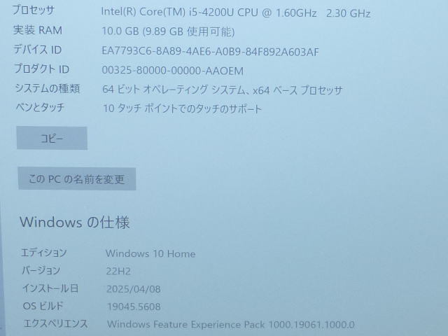CPU:Intel Core i5-4200U 1.60GHz(ターボ・ブースト 2.0 対応:最大2.60GHz)