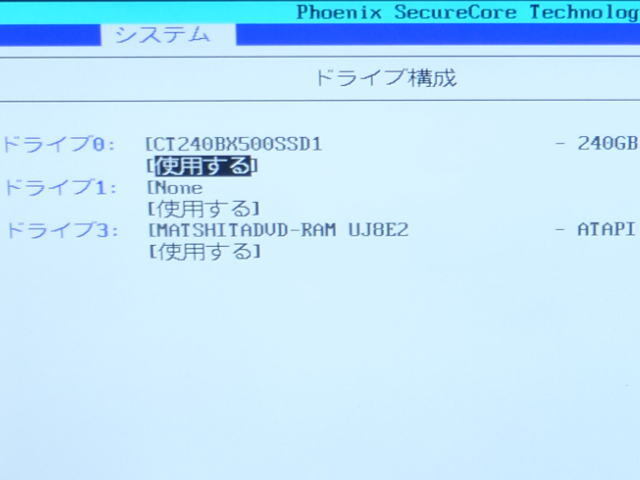 ストレージ:SSD 240GB Crucial 3DNAND BX500 CT240BX500SSD1