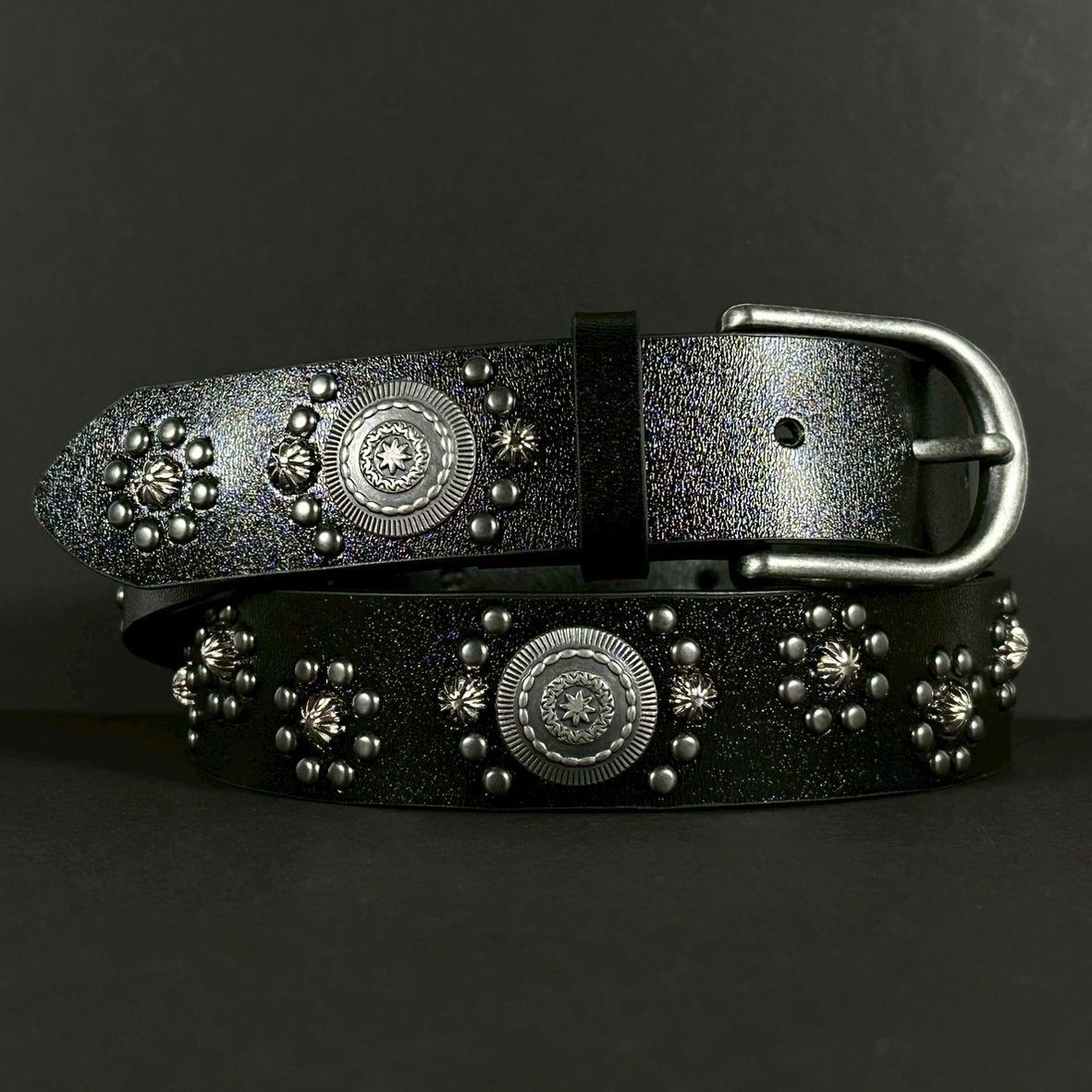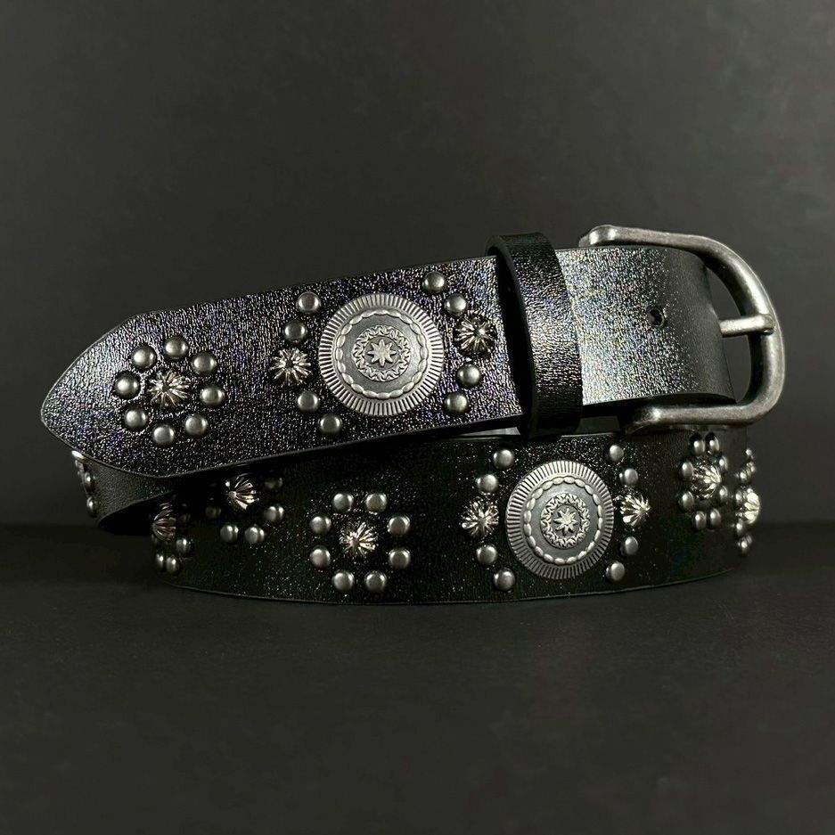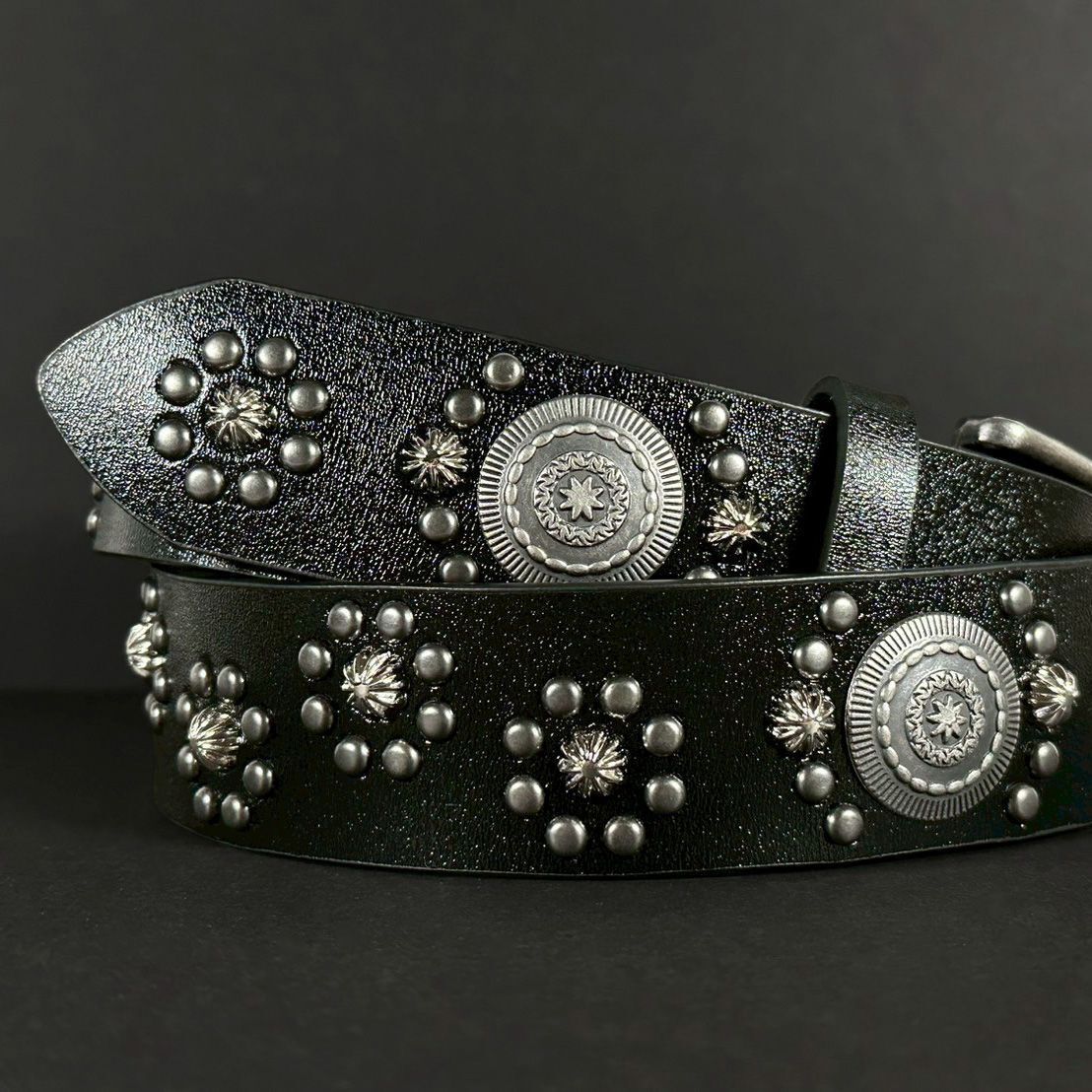 タフな風合いのレザーに、スタッズとコンチョを絶妙なバランスで配置した、存在感ある一本です(*^^)v