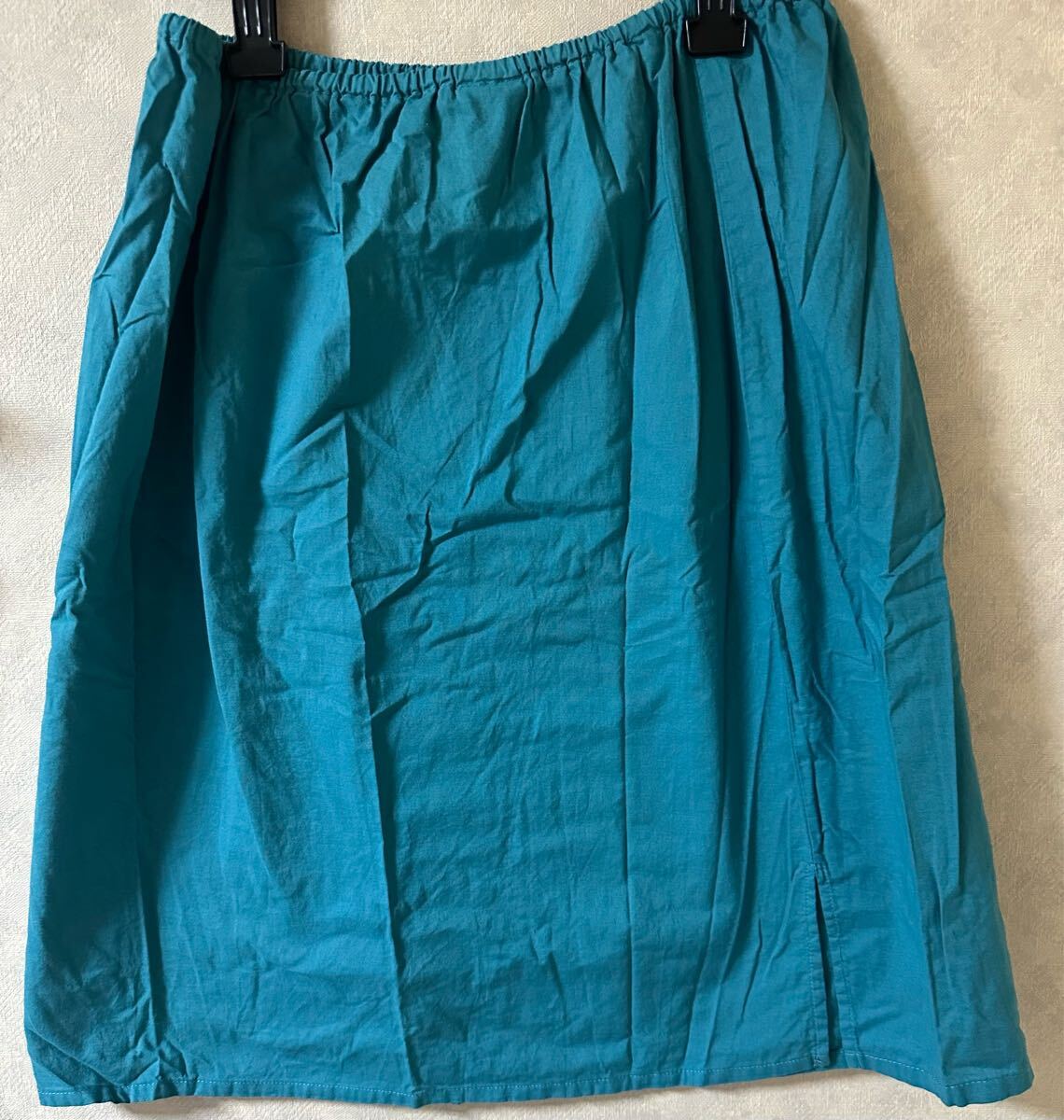 ウエストがゴムになっていて両サイドにスリットが入っています。