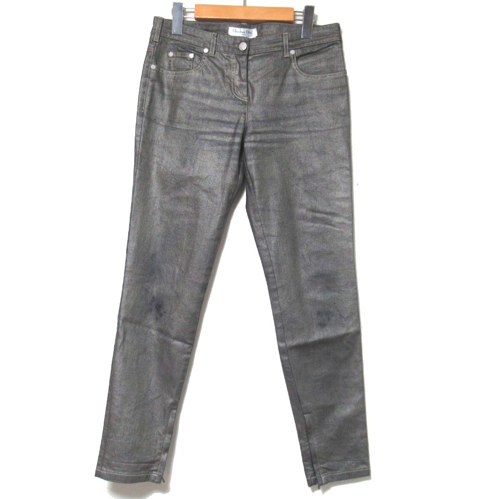 良品 Christian Dior クリスチャンディオール 裾ジップアップ コーディングデニムパンツ ジーンズ F38 メタリックグレー