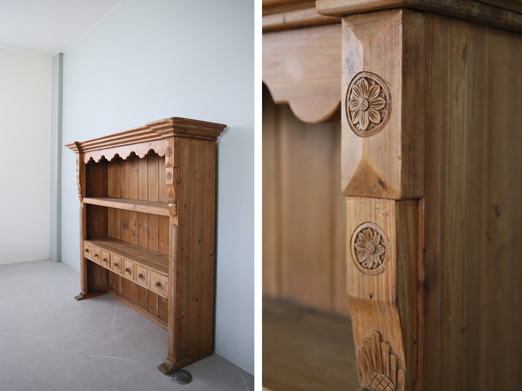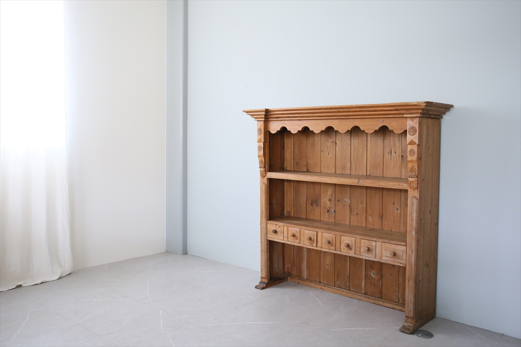 オールドパイン材の古艶が素敵なブックシェルフ。