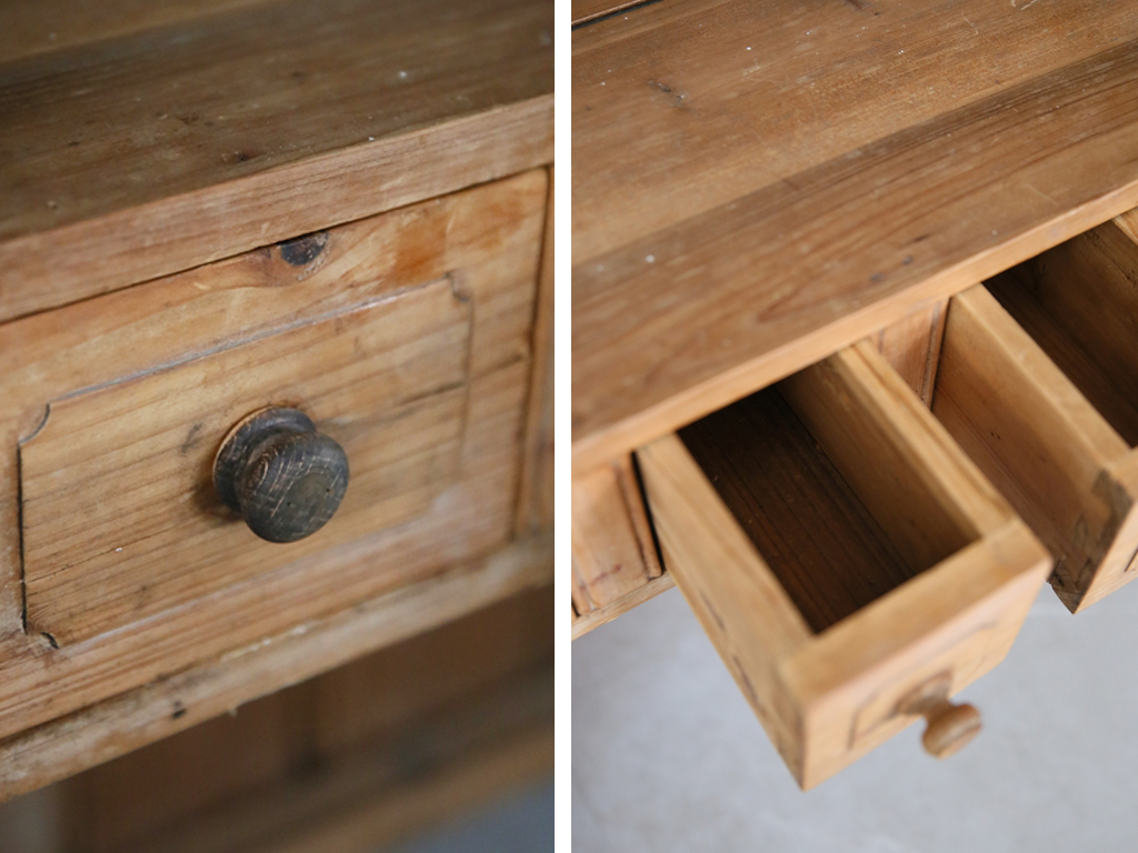 また、一番左側の取っ手は引出ではなく飾りとなります。