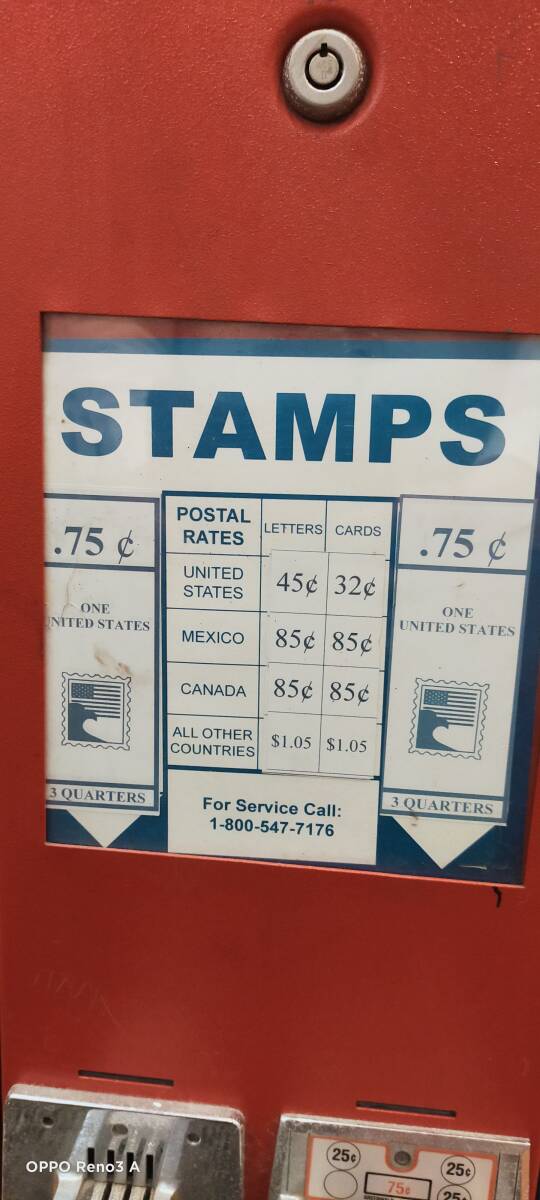 アメリカの切手自動販売機です。町中で使用されてました本物の自動販売機になります。日本ではあまり見掛けないのではないでしょうか?