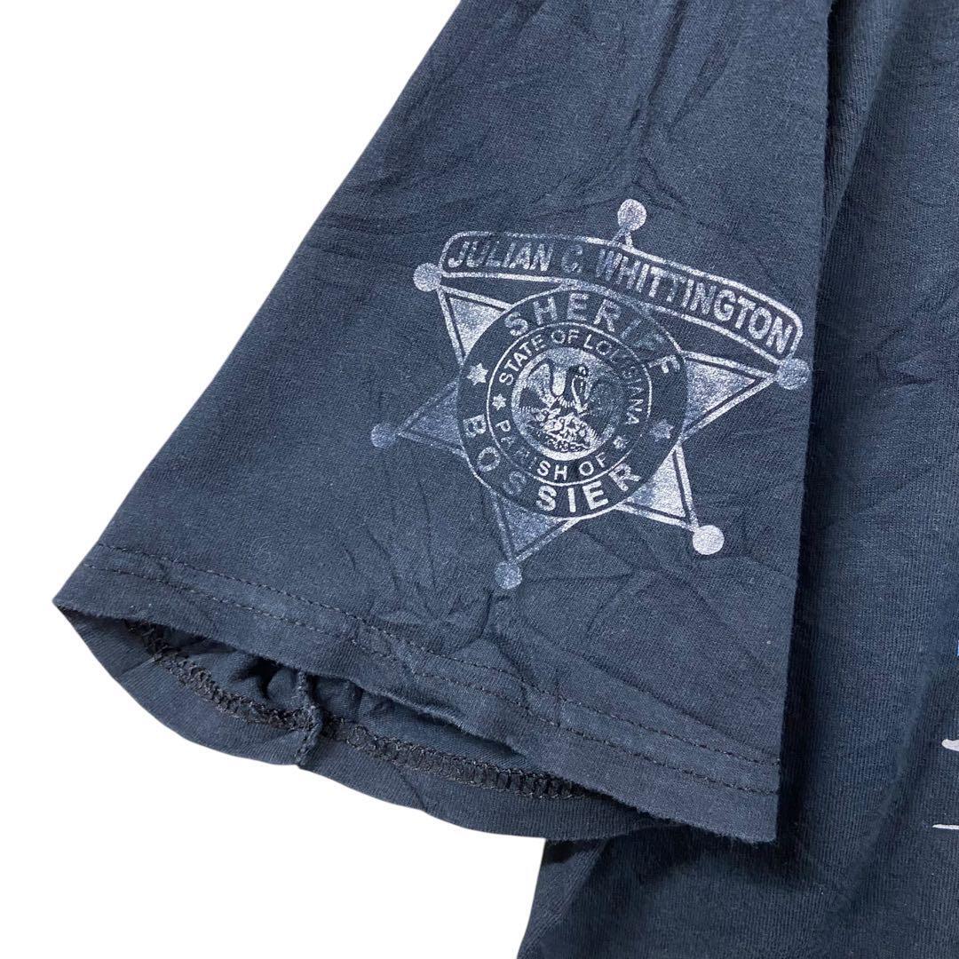 首元によれ、プリント部分にひび割れ、両袖プリント部分のこすれがございます。