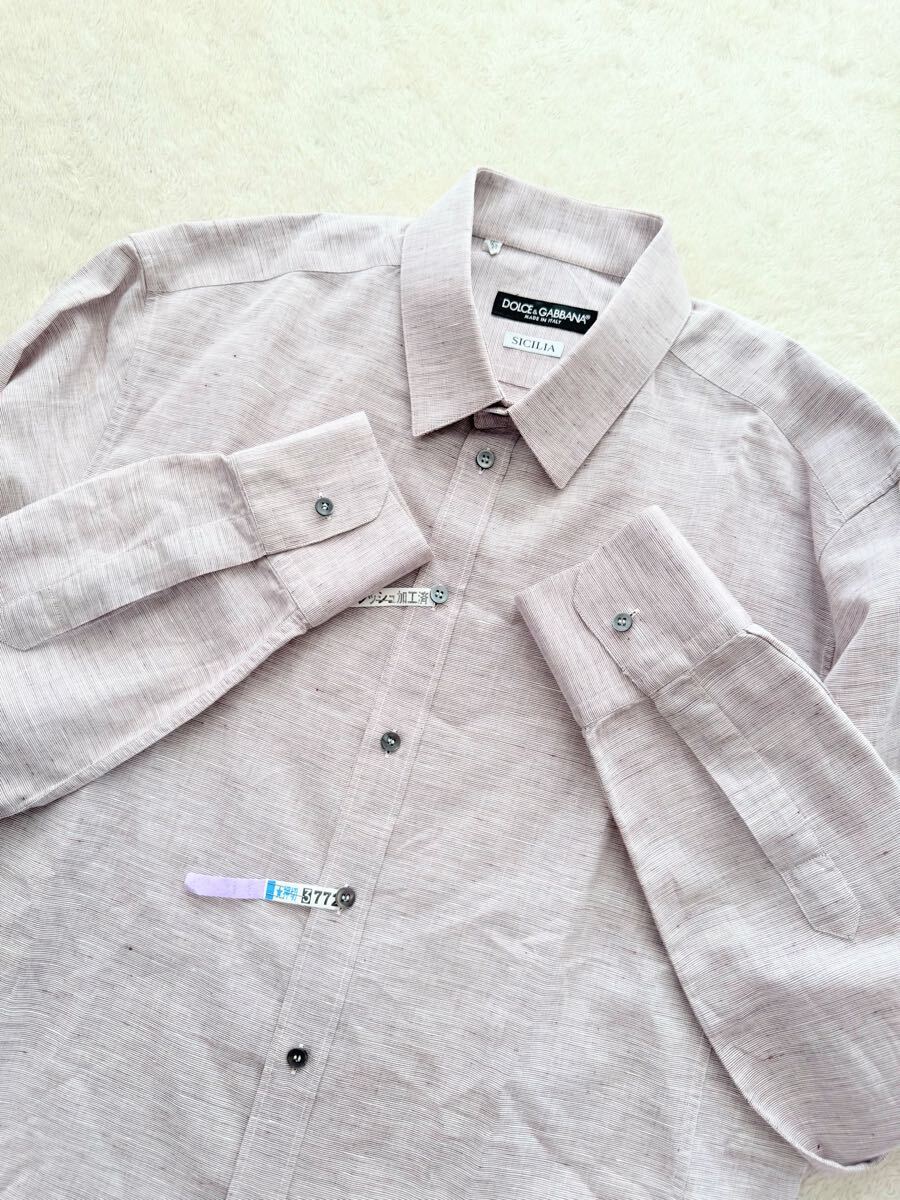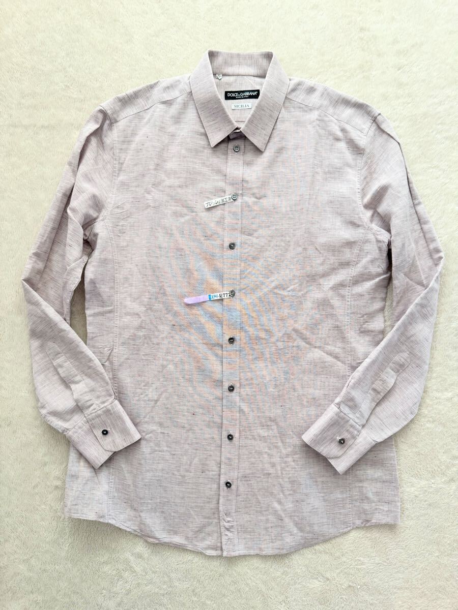 DOLCE&GABBANA size42-16 1/2 イタリア製リネン混長袖シャツ メンズ ドルチェ&ガッバーナ SICILIA