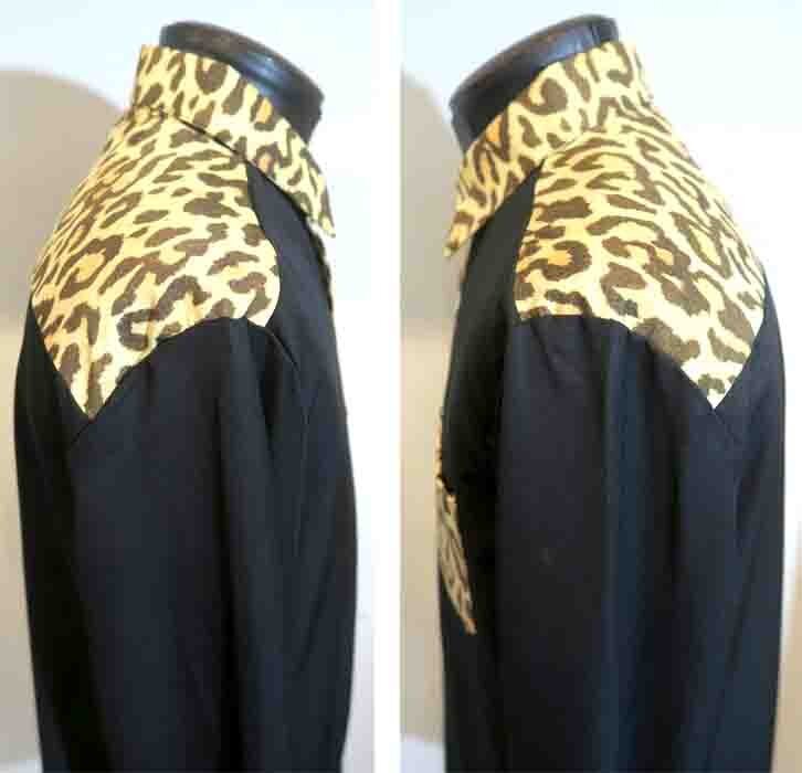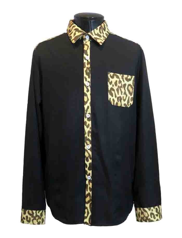 新品 XLサイズ 豹柄 シャツ 長袖 切替 黒 1948 メンズ ドレスシャツ ブラック パンサー レオパード 柄シャツ パーティー衣装 ロカビリー