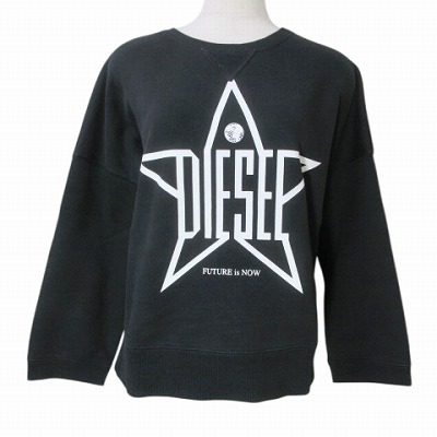 ディーゼル DIESEL FUTURE is NOW スウェット トレーナー 長袖 裏起毛 プリント Vガゼット ドロップショルダー XS 黒 ブラック X