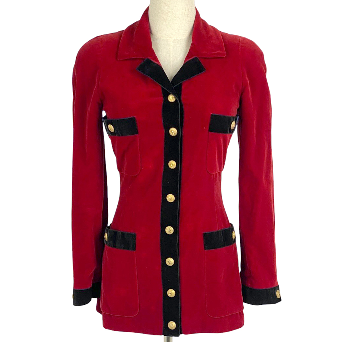 | シャネル CHANEL ココマークボタン テーラードジャケット 長袖 ベロア バイカラー テーラードジャケット コットン その他 レッド ブラック レディース 【中古】 |