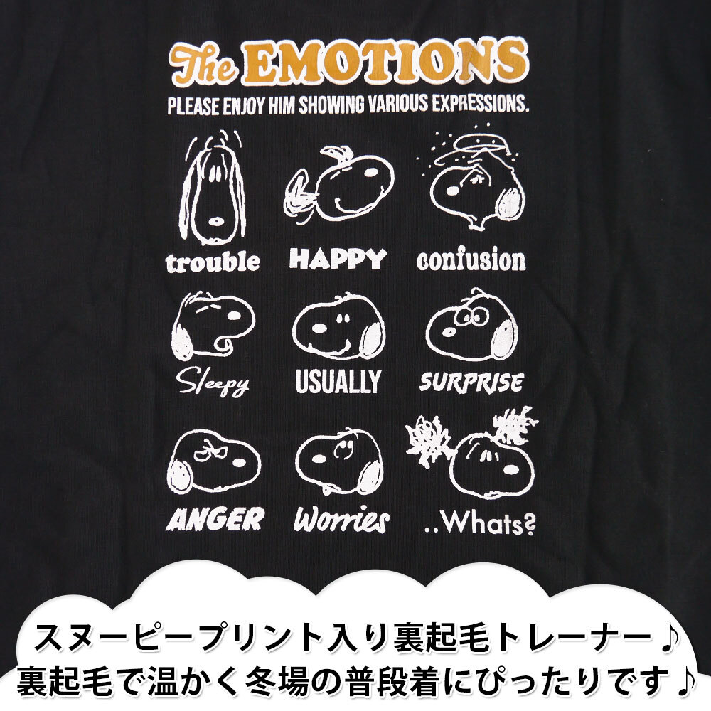 正規店仕入れの新品未使用品です 綿とポリエステル素材で、吸汗速乾に優れます 背中にスヌーピープリント入り裏起毛トレーナー 裏起毛で温かく冬場の普段着にぴったりです |