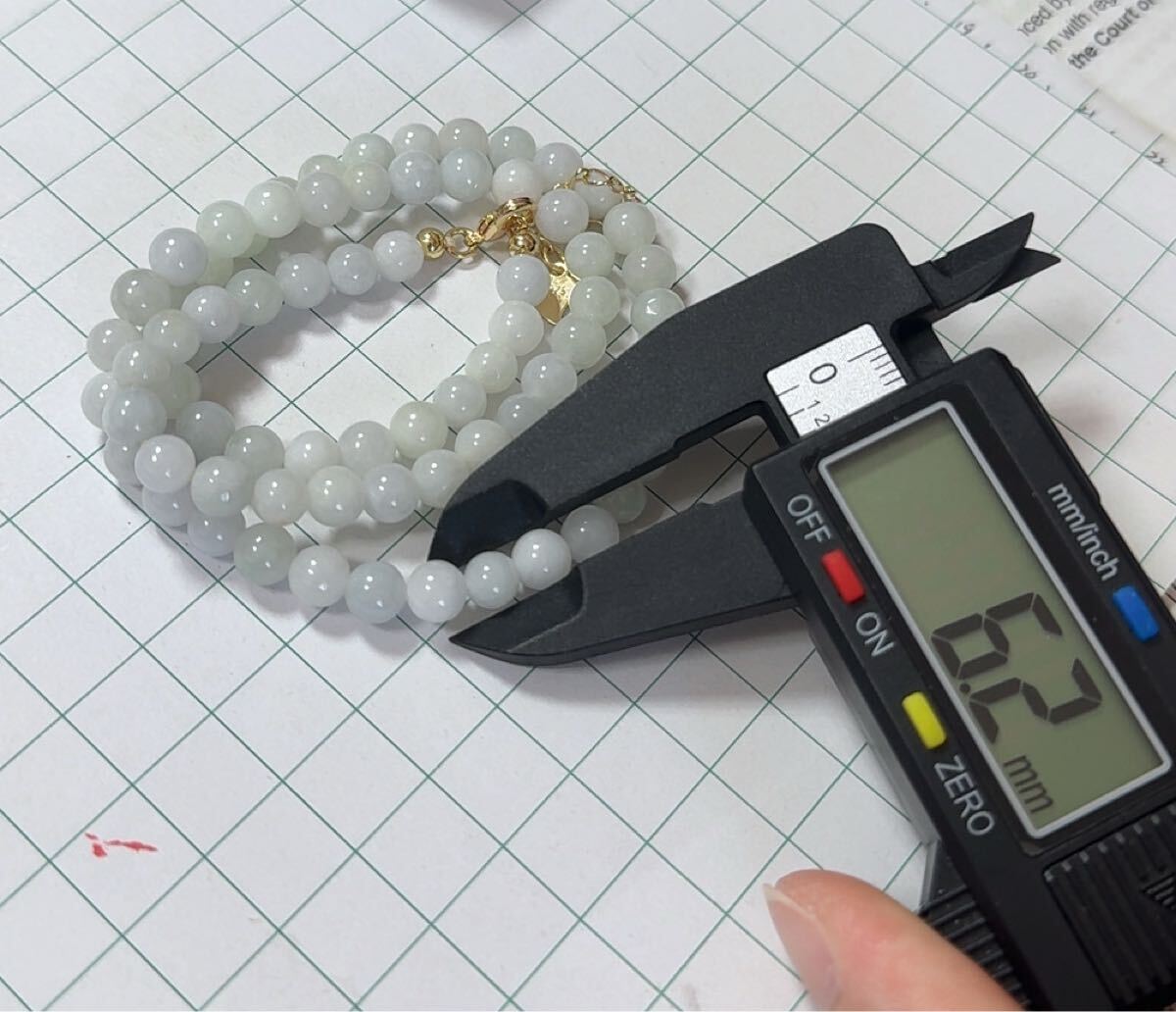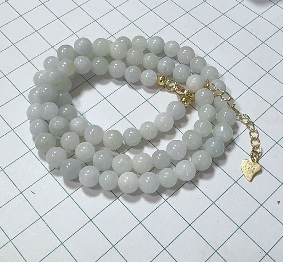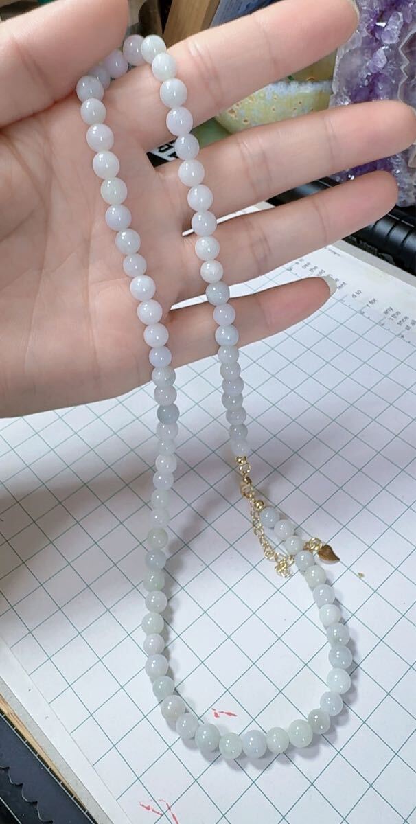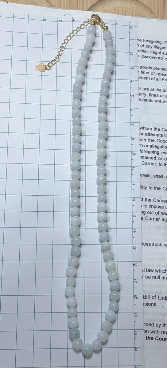 R2-01008天然本翡翠 《本物保証》 糯肌翡翠 ネックレス約44cm 最大48cmまで 天然石6.2mm 一点物 希少 縁起物 お守り パワーストーン