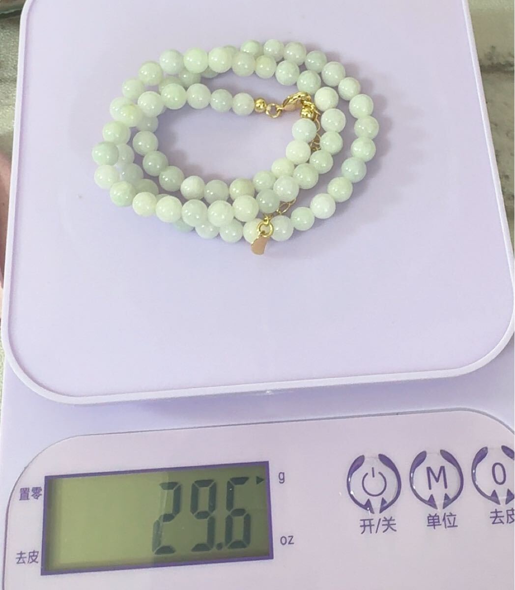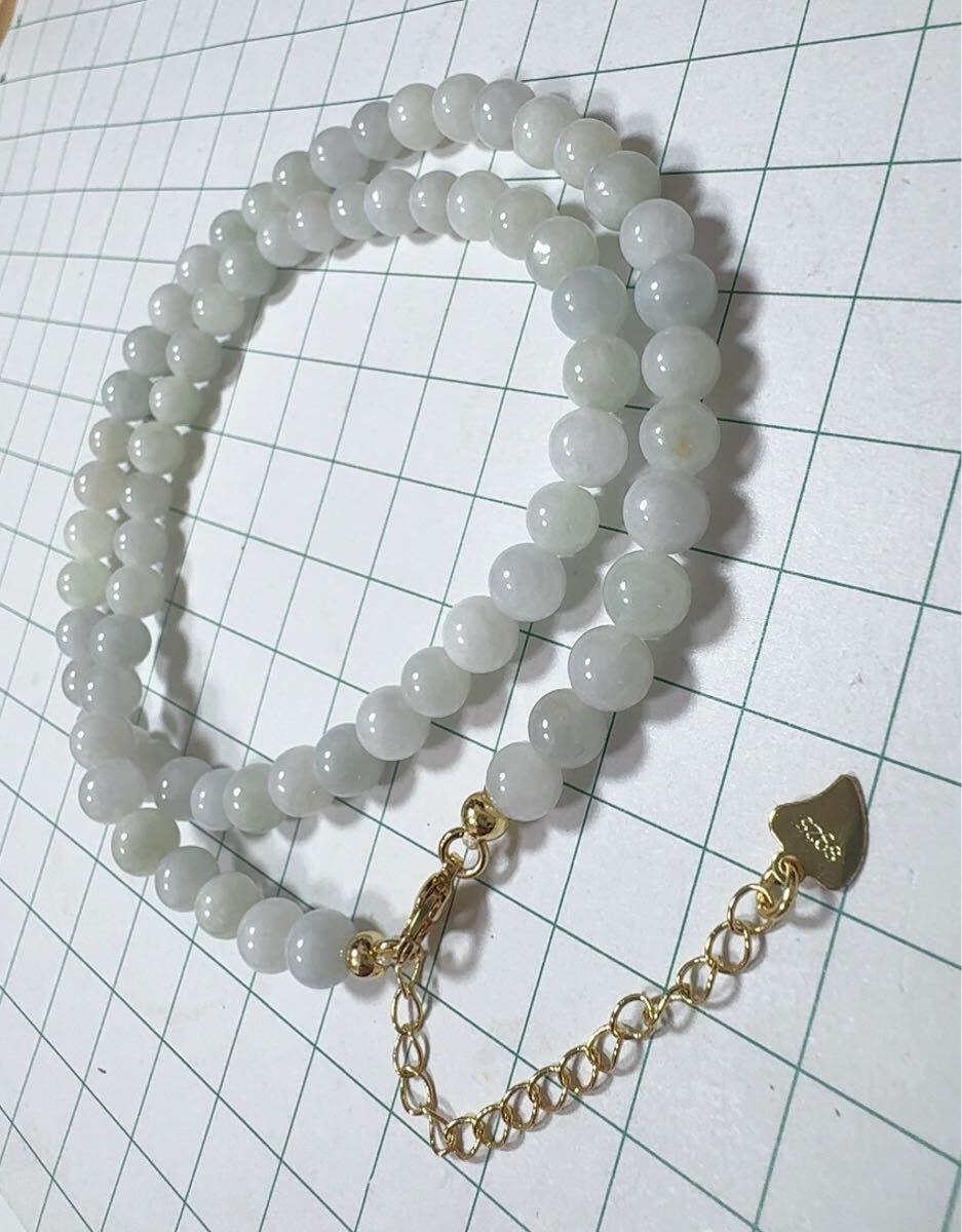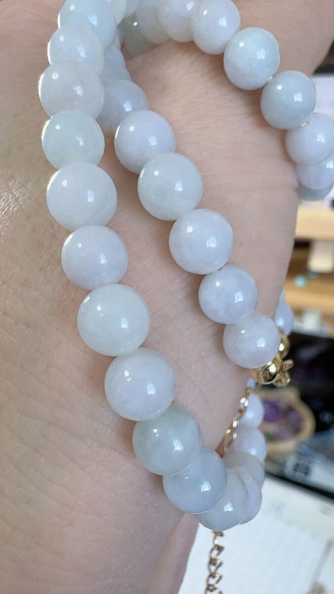 R2-01008天然本翡翠 《本物保証》 糯肌翡翠 ネックレス約44cm 最大48cmまで 天然石6.2mm 一点物 希少 縁起物 お守り パワーストーン