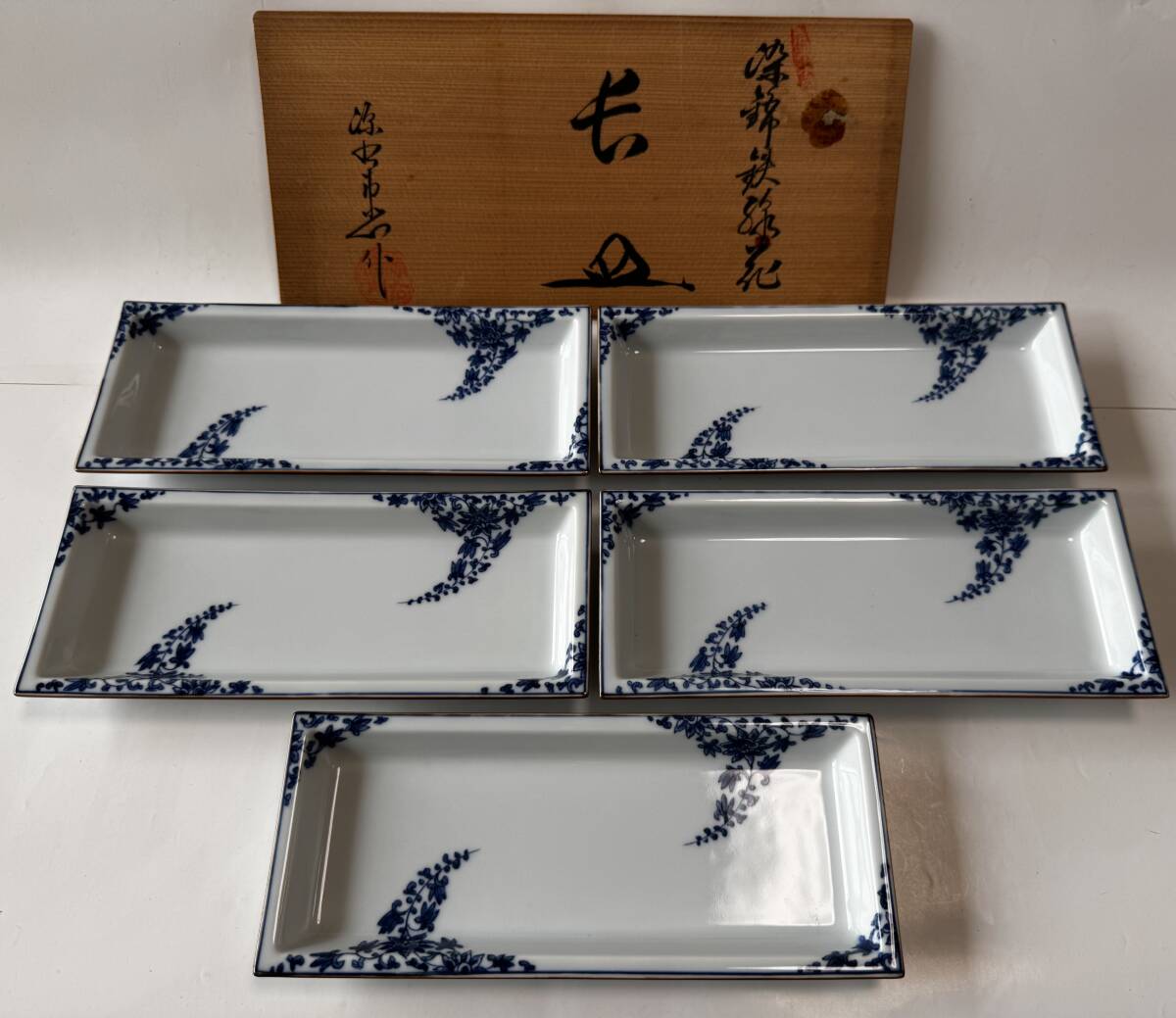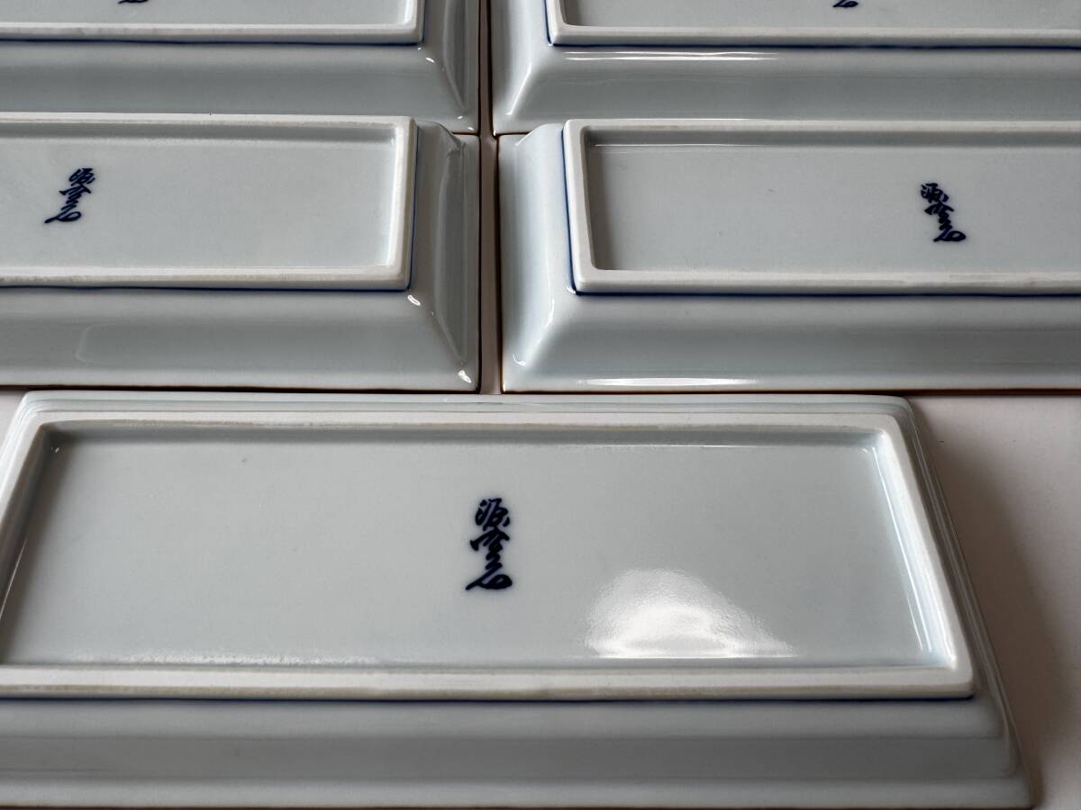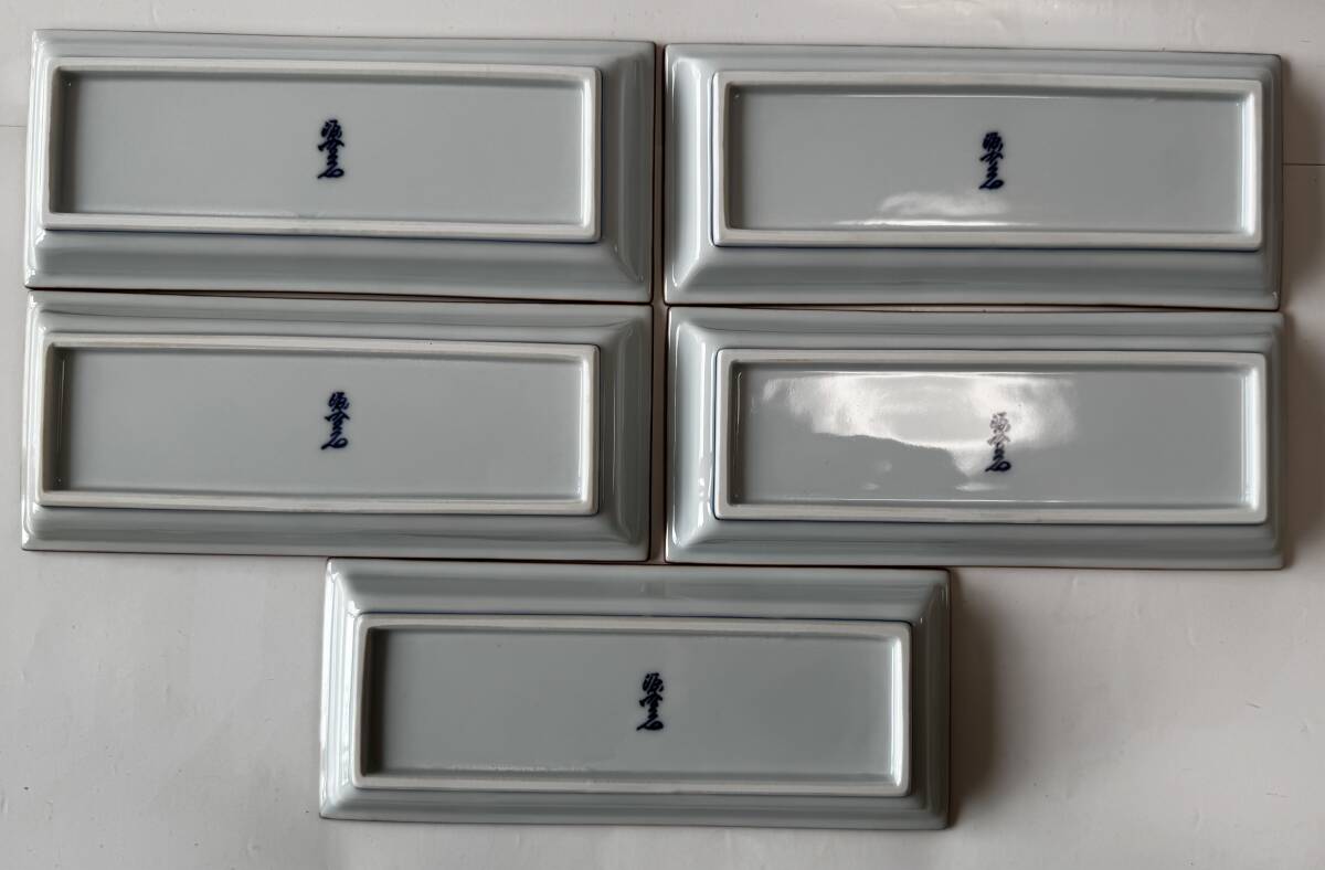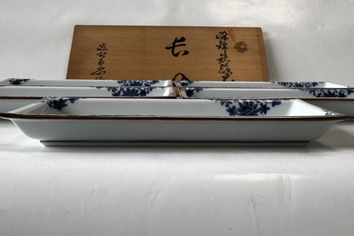 有田焼 源右衛門窯 染付け長皿 染付芙蓉絵 長方皿 五枚揃 5枚 角皿 22cm 共箱