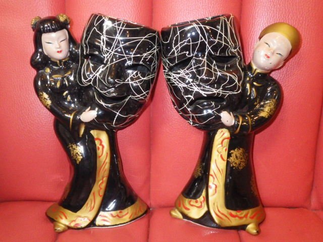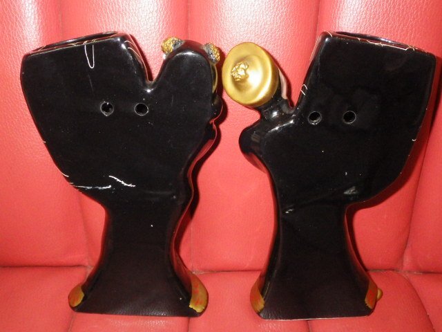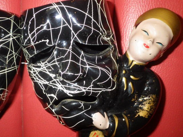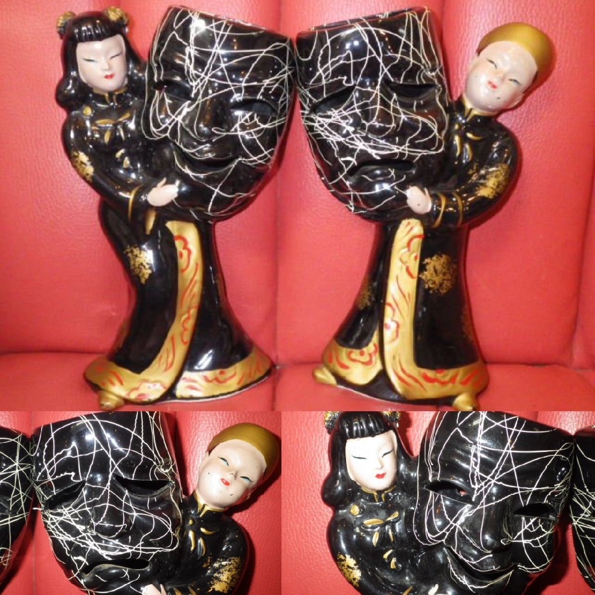 素材はセラミック、ツーフェイスの上部がウォールポケットになっているタイプ、背面の穴で壁にかけて飾れる(ヒモを通して輪っかを作って引っ掛けるとと壁にかけ易いです)&そのまま棚などに置いても飾れる仕様となります♪