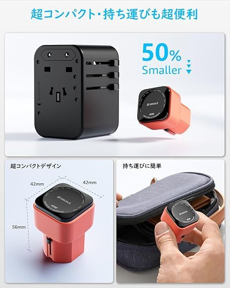 超ミニ 超コンパクト 海外 変換プラグ コンセントマルチ変換プラグ USB-C(GaN 45W)&1 USB-Aポート 全世界対応 0426