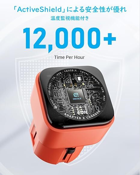 [安心・安全の設計|様々な安全保護機能付] 本製品は過熱保護、過電圧保護、過電流保護、過充電保護、短絡保護、過負荷保護の様々な保護機能がありますので、デバイスの充電を保障し、短絡または過熱の心配がいりません。また、変換プラグの PC ケースはファイアープルーフの材料により製造され、750°Cまでの火災に防火可能です。
