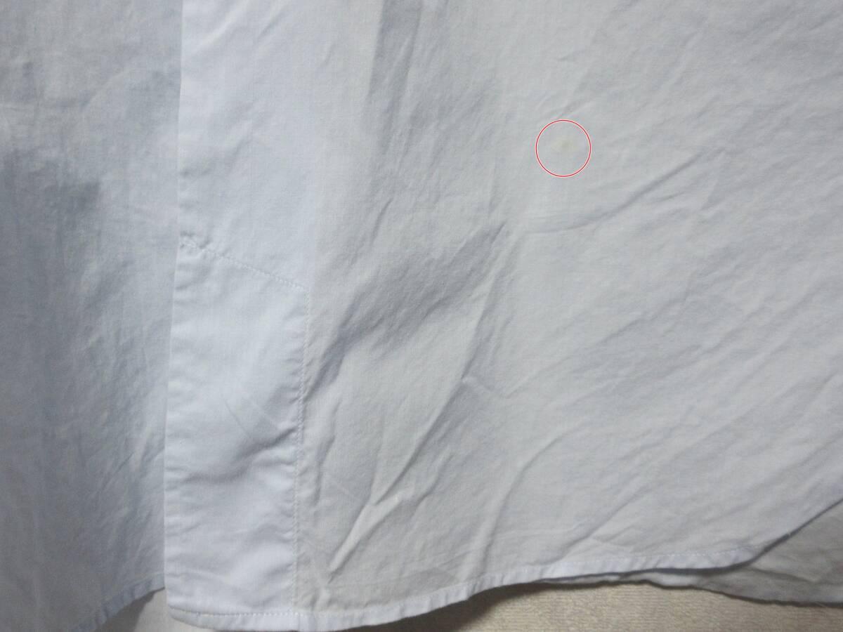 フロント裾から14cmの場所に7mm程度の汚れがありますが目立ちません。