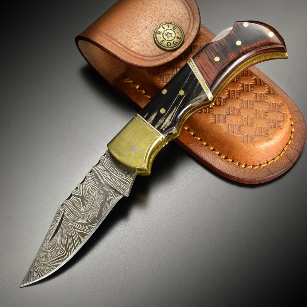 | こちらは「Rite EDGE 折りたたみナイフ ダマスカス鋼 ロックバック式 DM1214 レザーシース付」のご購入ページです。 折りたたみナイフの詳細
