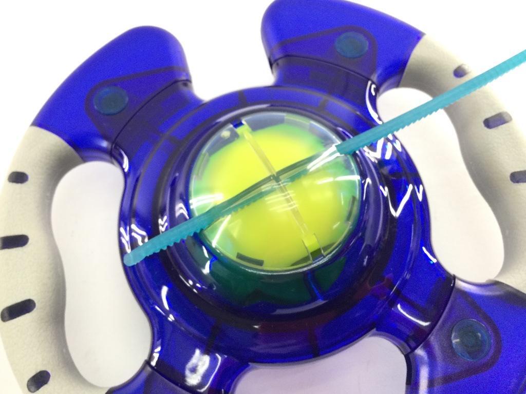 車のステアリングホイール形状で、中央のボール(ジャイロスコープ)を回転させるシンプルな仕組み。