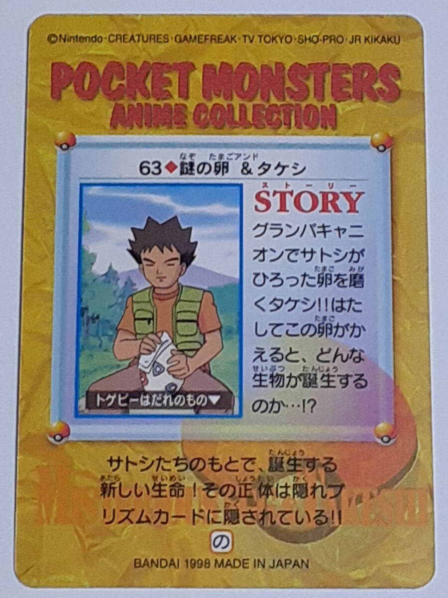 ☆1998年 カードダス ポケットモンスター アニメコレクション №63 『謎の卵&タケシ』  Carddass POCKET MONSTERS Pokemon