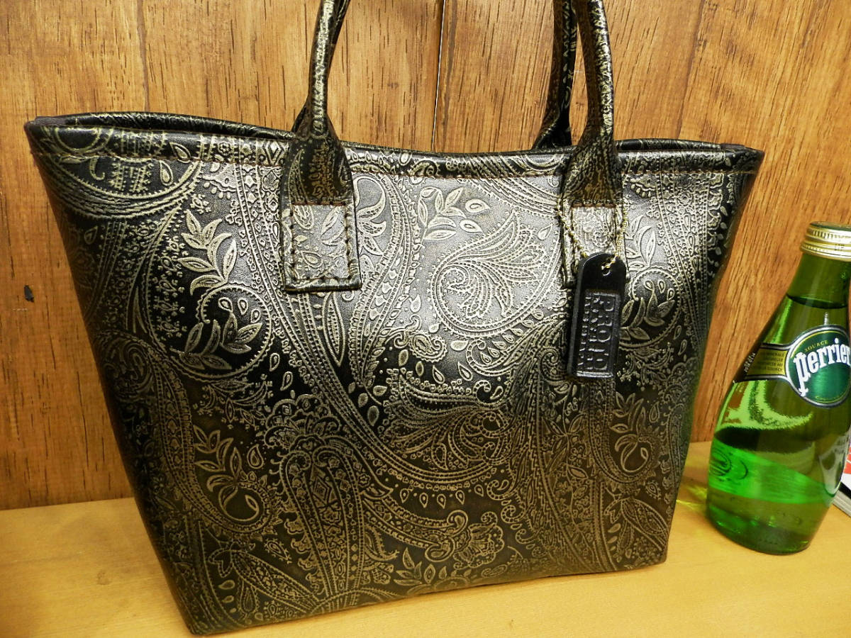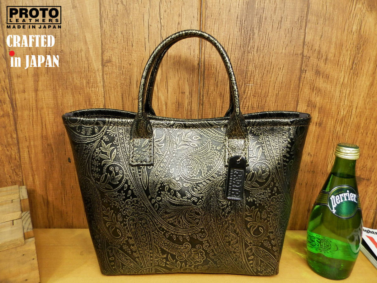 ☆ゴージャス☆黒金ブラック×ゴールドのペイズリー柄レザーのミニトートバッグ♪Sサイズ姫路ハンドメイド日本製カスタム