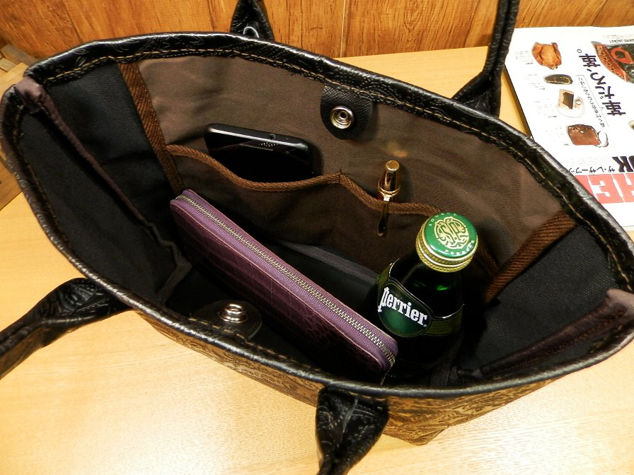 お弁当箱、長財布、スマホ、小型のボトルなど収納できます。