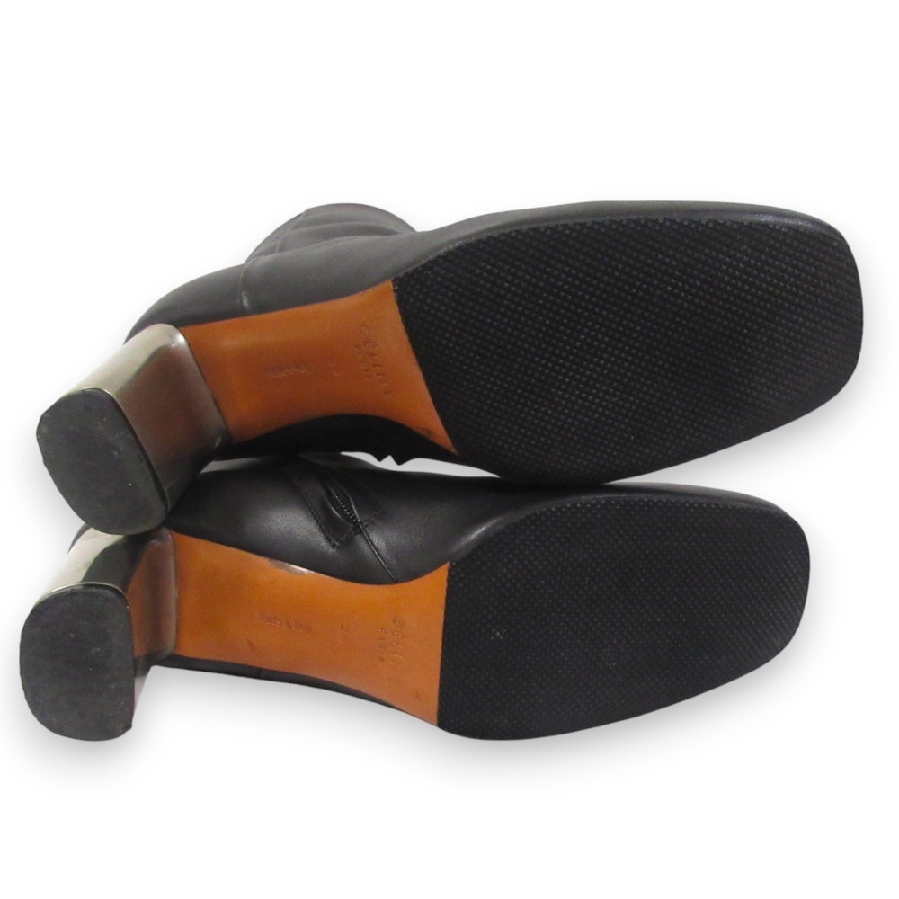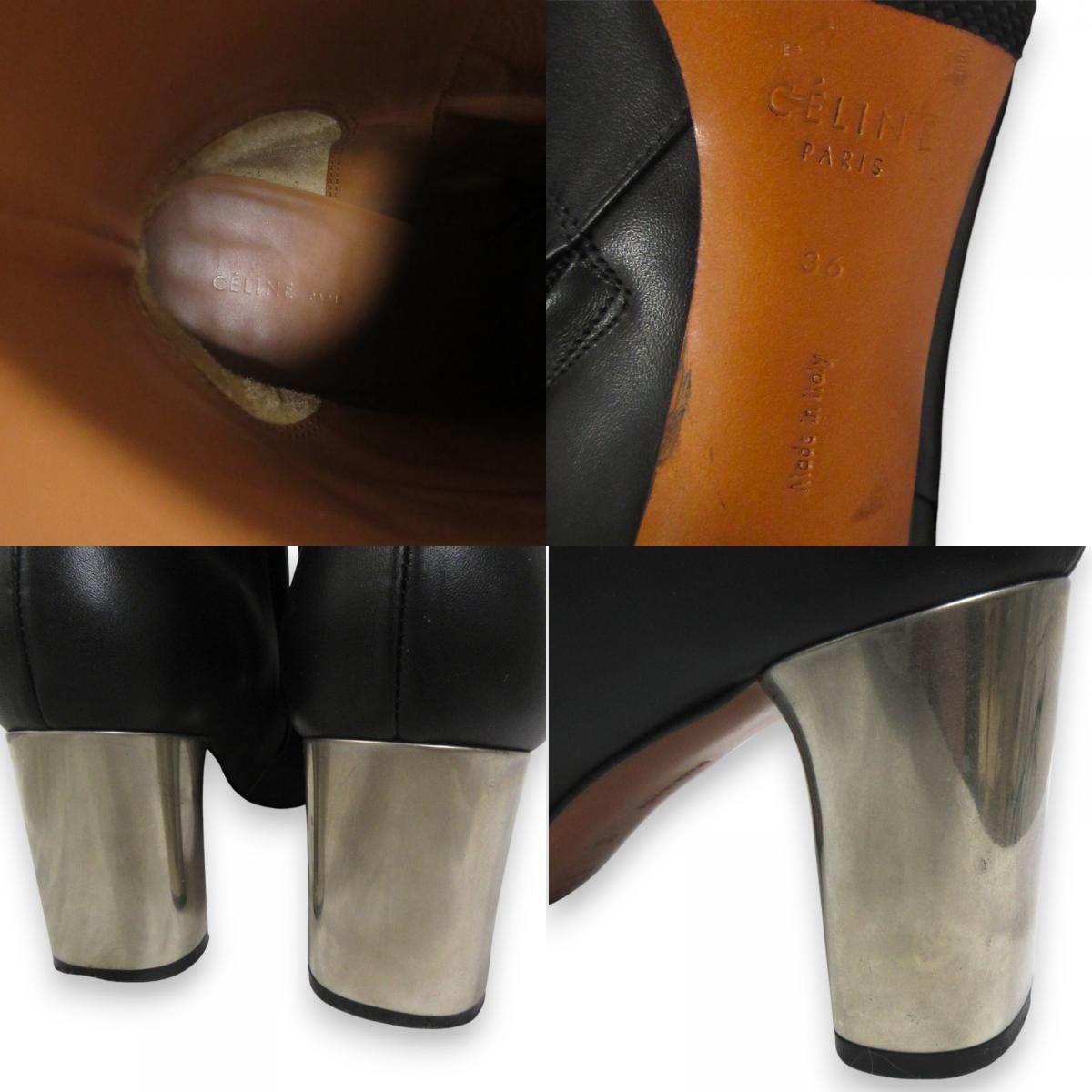 良品 CELINE セリーヌ フィービー期 メタルヒール レザー スクエアトゥ ショートブーツ 36 約23cm ブラック