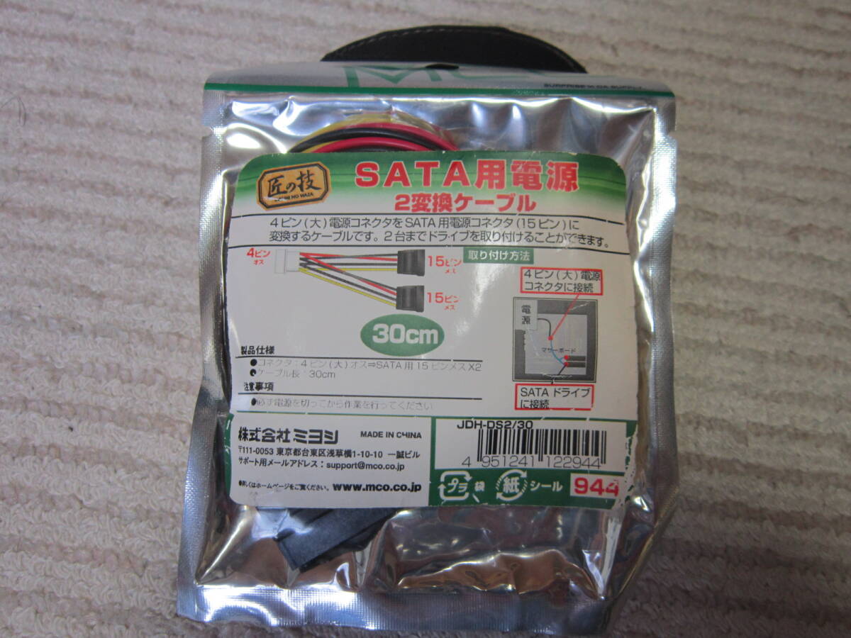 4ピン電源コネクタをSATA用電源コネクタ(15ピン)に変換。