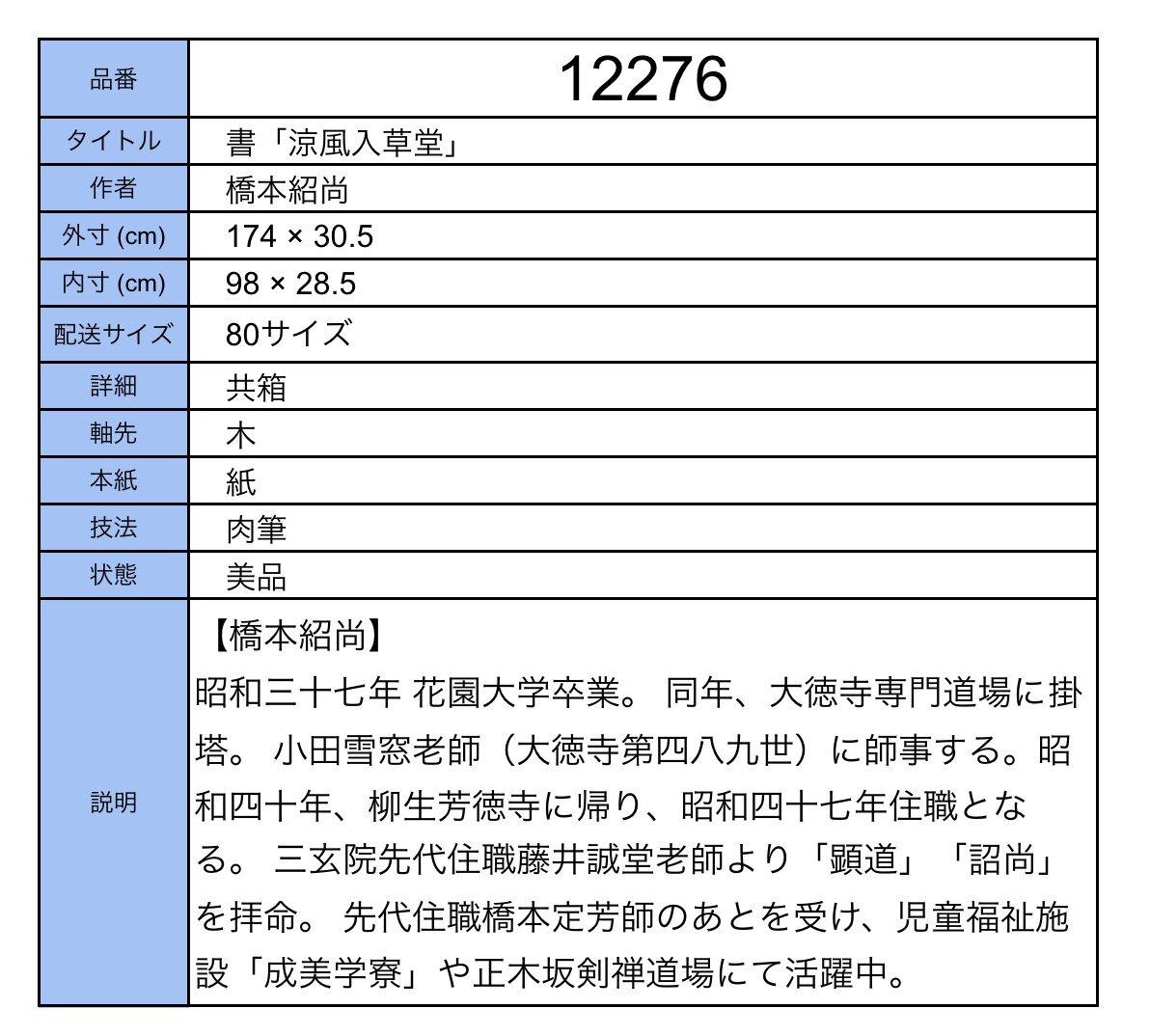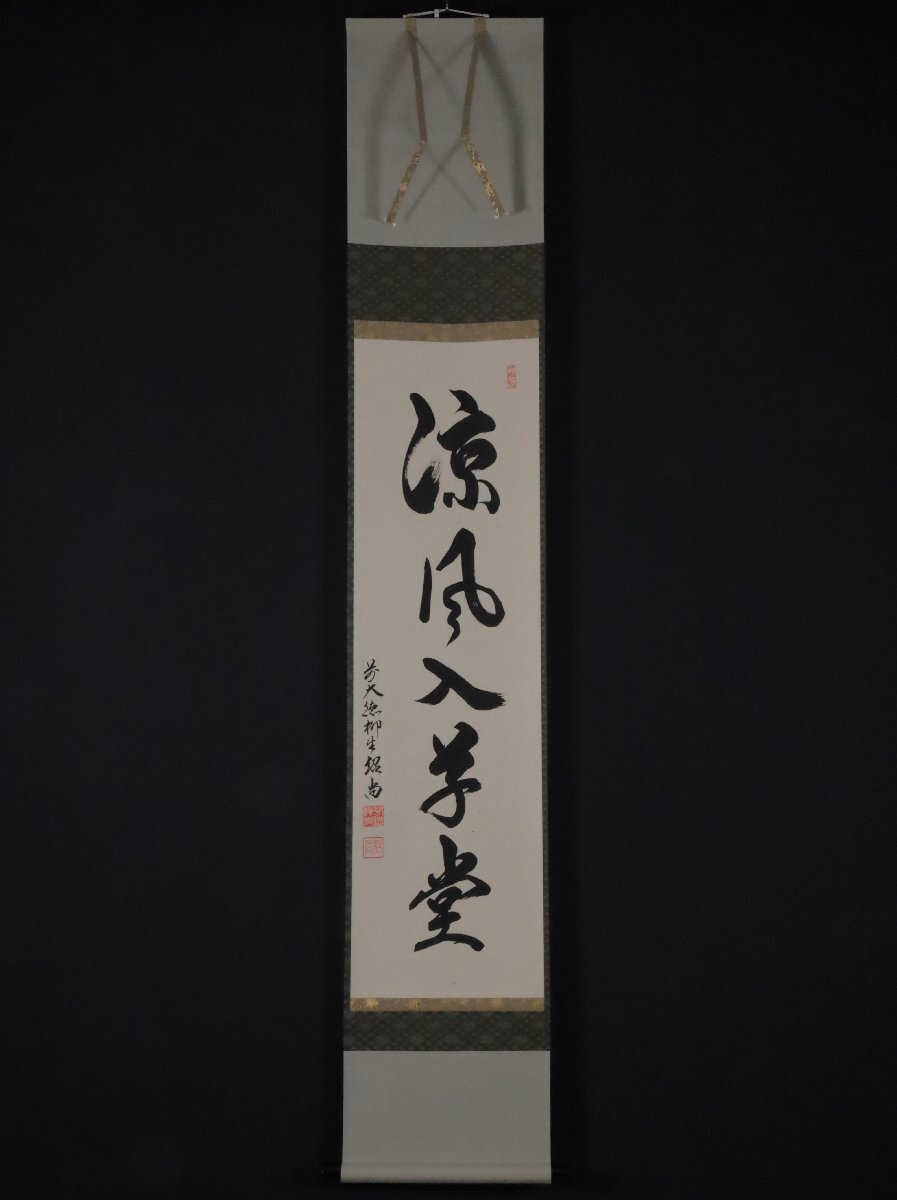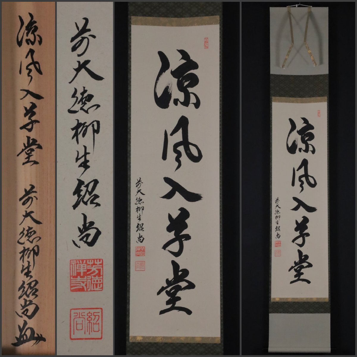 【模写】吉】12276 橋本紹尚 書「涼風入草堂」 共箱 小田雪窓師事 臨済宗 柳生芳徳寺 大徳寺 仏教 茶掛け 茶道具 禅語 掛軸 掛け軸 骨董品