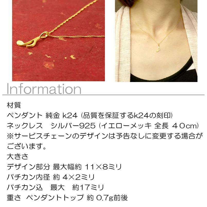 商品コード 190805100c 発送は1ヶ月ほどです材質ペンダント 純金 k24 (品質を保証するk24の刻印) ネックレス シルバー925 (イエローメッキ 全長 40cm)※サービスチェーンのデザインは予告なしに変更する場合がございます。大きさデザイン部分 最大幅約 11×8ミリバチカン内径 約 4×2ミリバチカン込 最大 約17ミリ重さ ペンダントトップ 約 0.7g前後 幸運を呼ぶと言われている縁起の良い純金でお造りした8分音符ペンダント本物素材の優しい色合いと、デザイン性をお楽しみいただけます。大切な方へのプレゼントや自分へのご褒美に最適純金 ネックレス 24金 ゴールド 24K 8分音符 音符 音楽 ペンダント 24金 ゴールド k24 レディース ギフト対応 結婚記念日 ギフト プレゼント 贈り物現物主義!純金を持っている方が安心 アレルギーフリー フリースタイル ニッケルフリー (ペンダントトップ 金属アレルギー 対応) 縁起物 ユニセックス LGBTQ 男女兼用 ジェンダーフルイド バディジュエリープレゼントとして最適 安い 人気 福袋 30代 40代 50代とりあえず定番なのに お洒落なオリジナルジュエリー