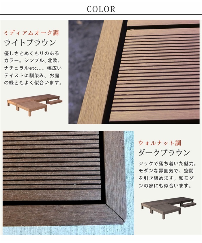 人工木ウッドデッキ ecofeel(エコフィール)4台 ステップセット