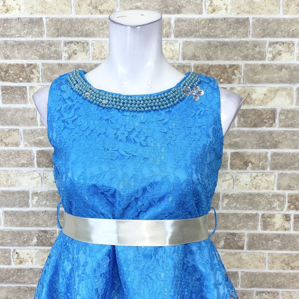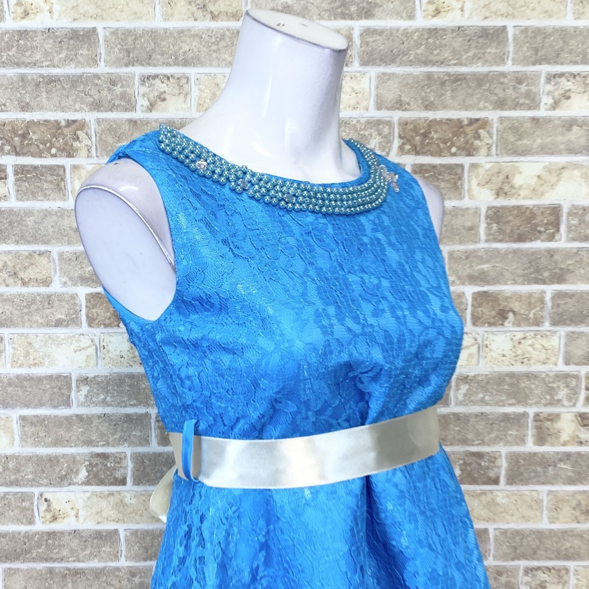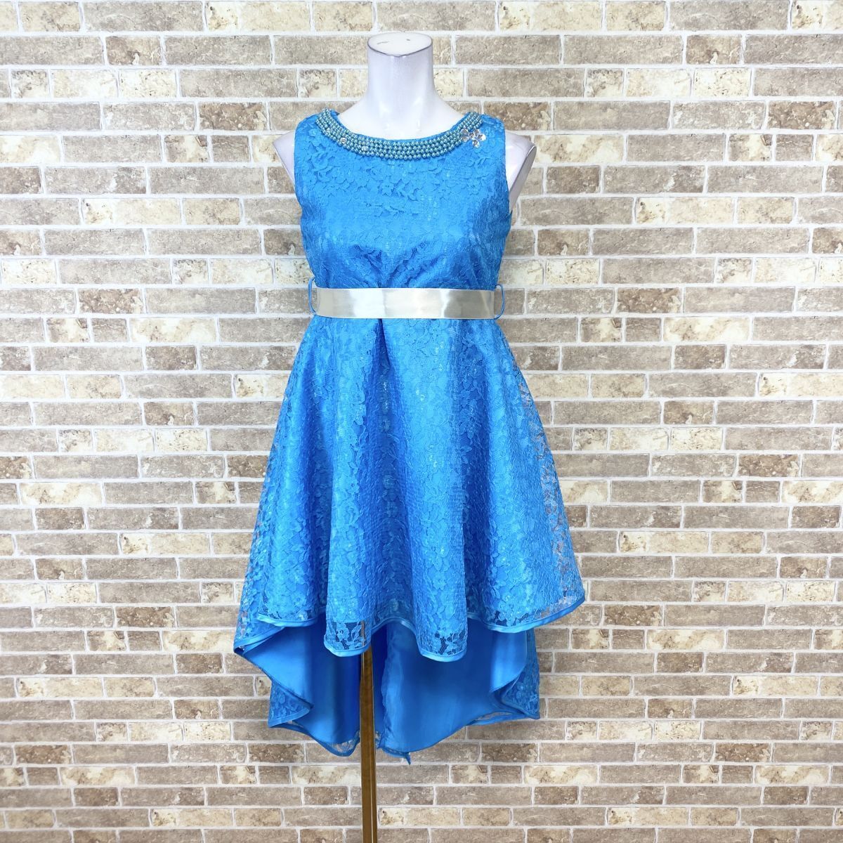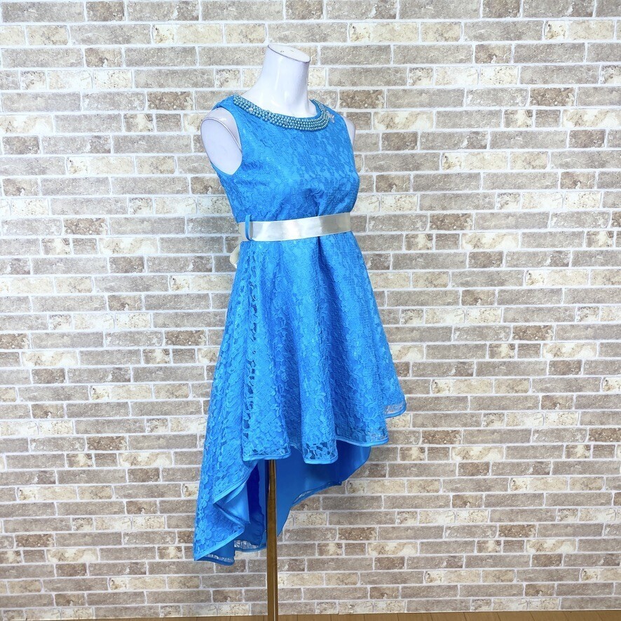 子供ドレス フィッシュテールドレス 160 青系 カラードレス 発表会 イベント 中古08394